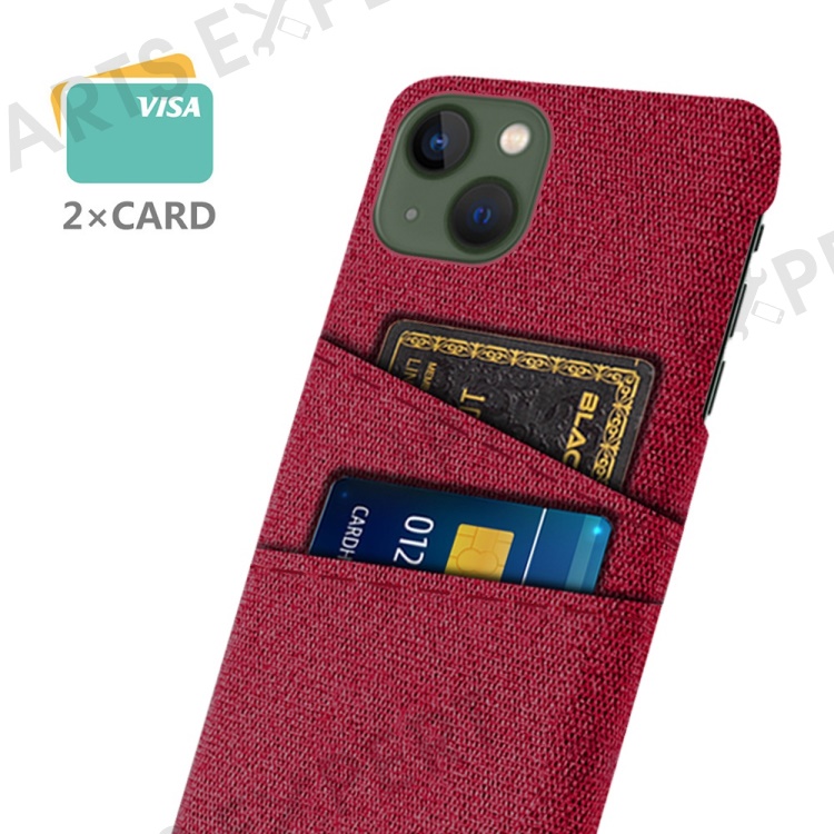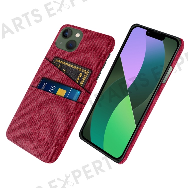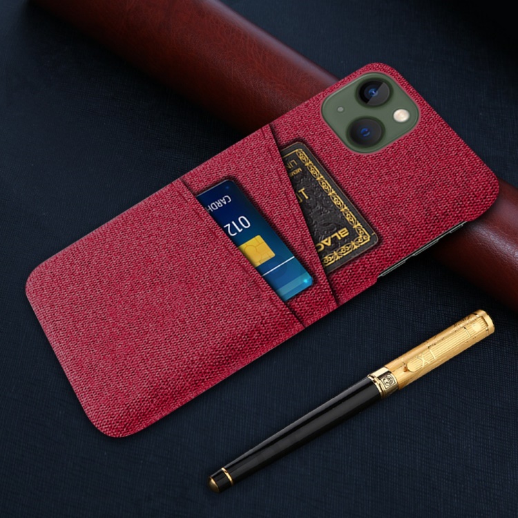 For iPhone 14 6.1 inch Cloth Texture Well-protected Phone Case Cloth + PC Cover with Dual Card Slots - Red