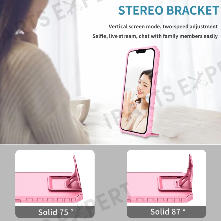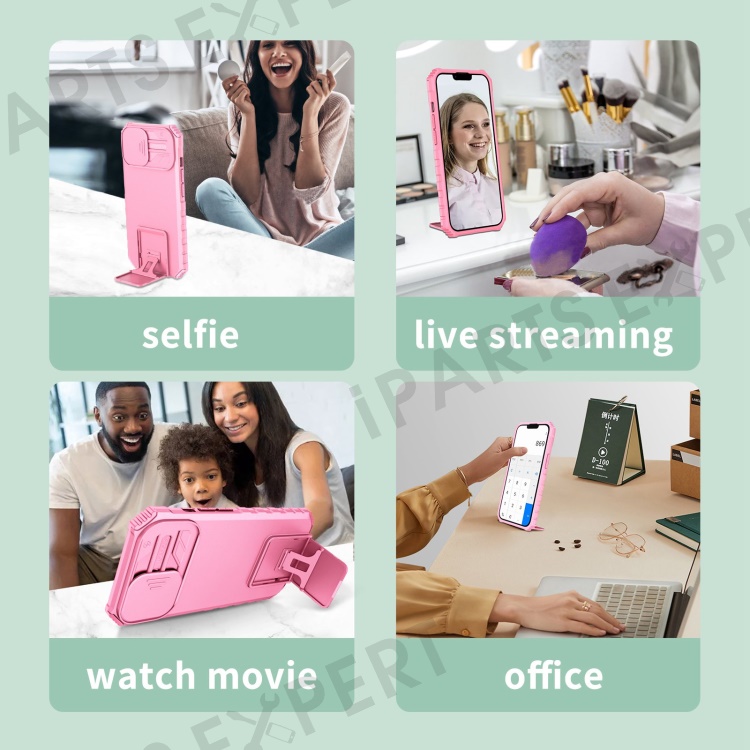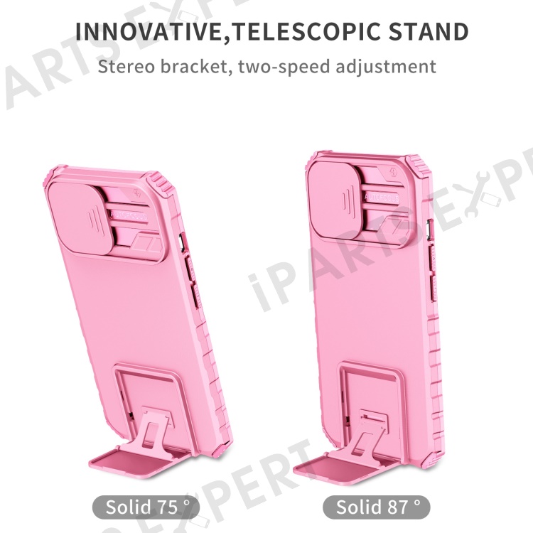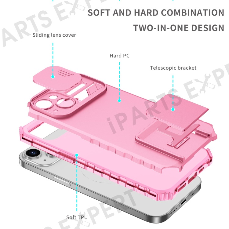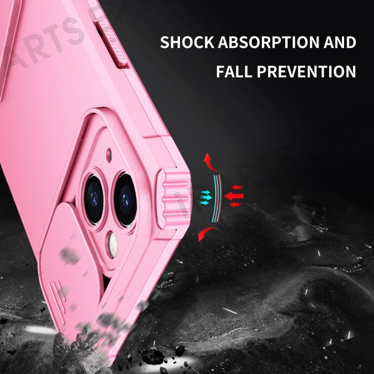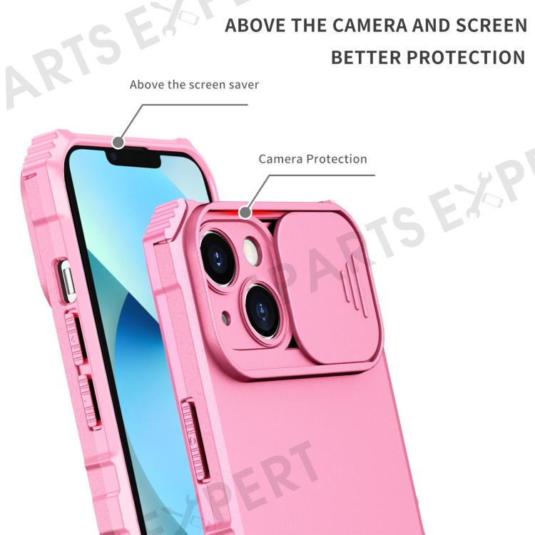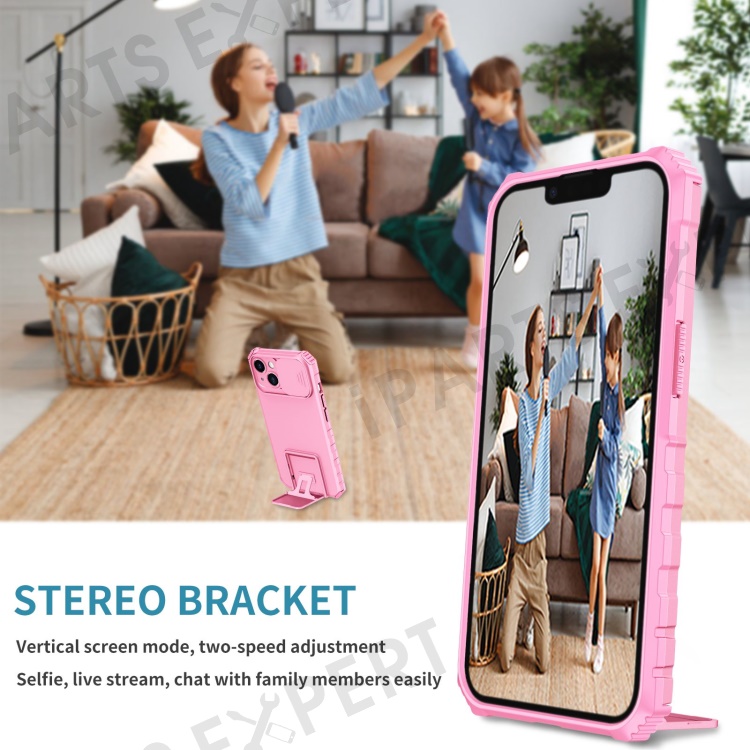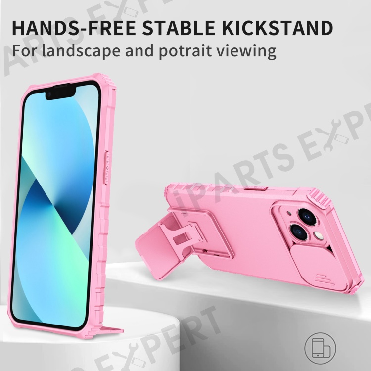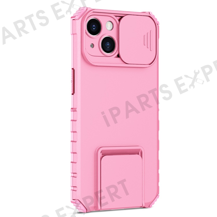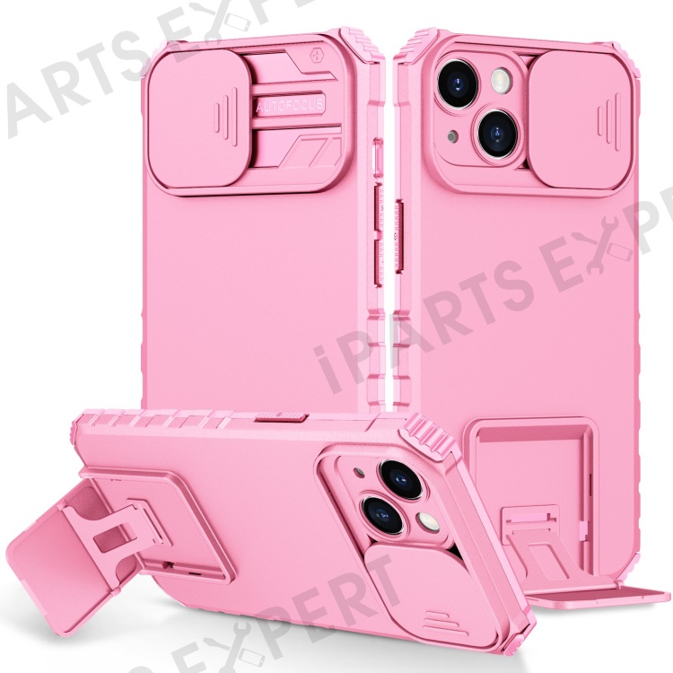 For iPhone 14 6.1 inch Dustproof Mobile Phone Cover Kickstand PC + TPU Slide Camera Protection Anti-Scratch Phone Case - Pink