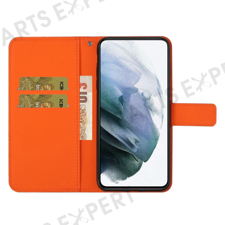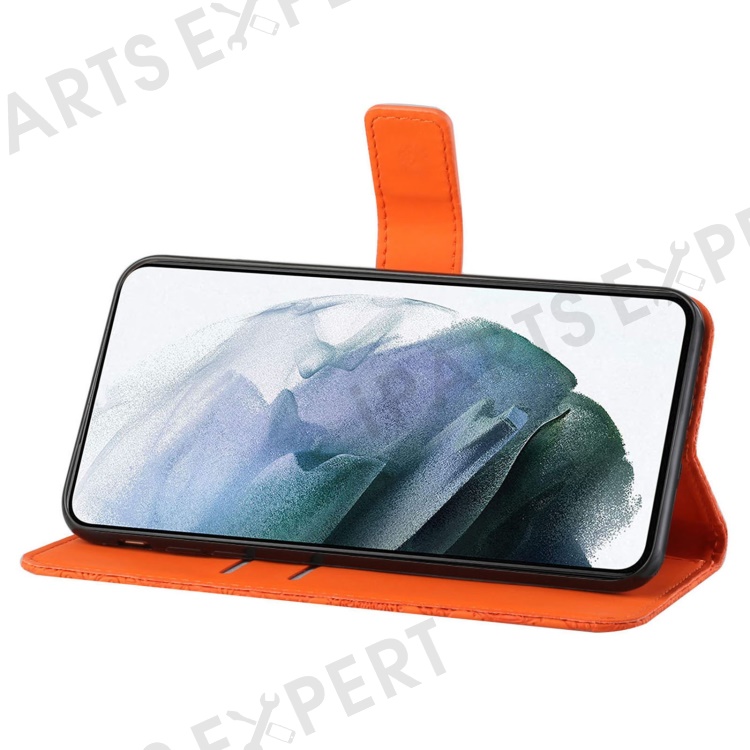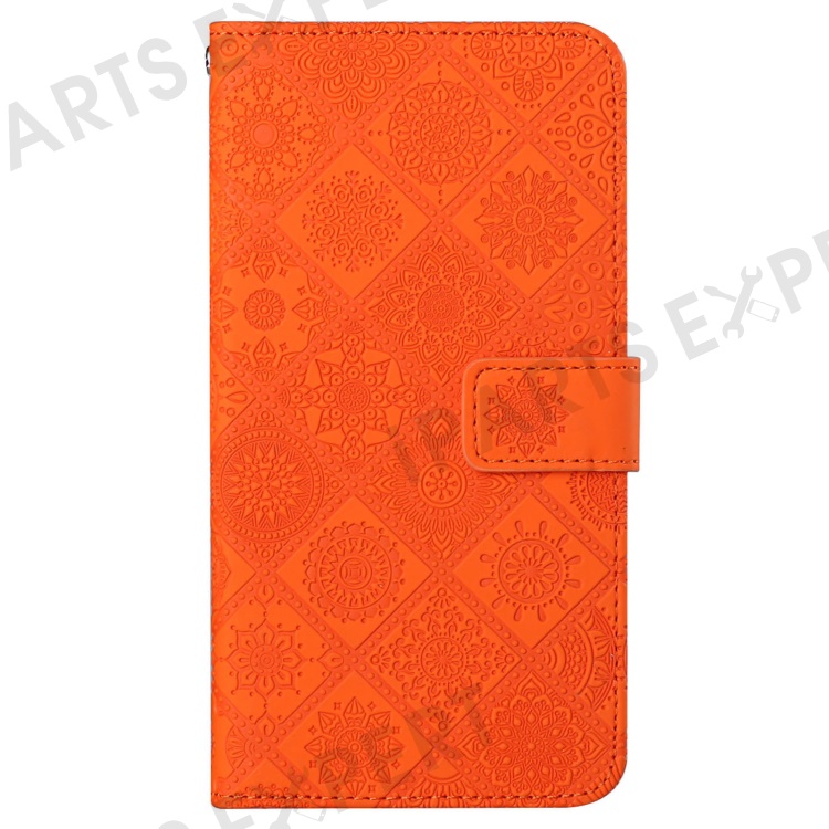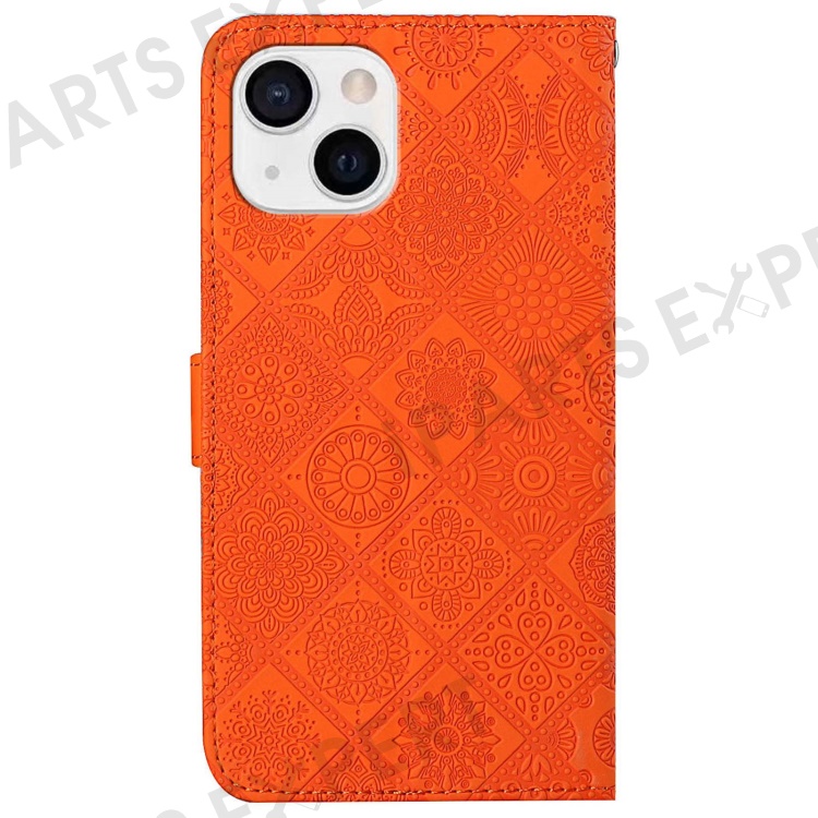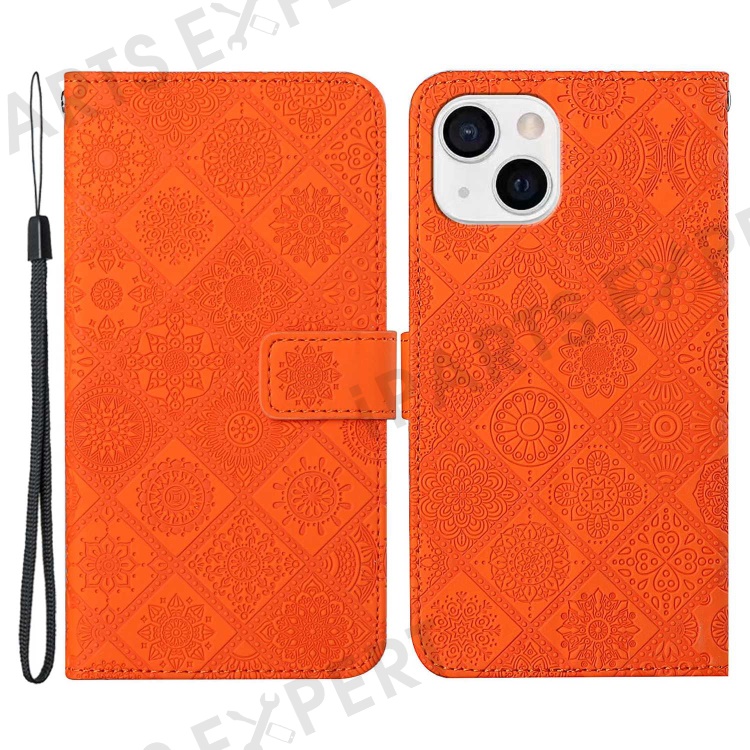 For iPhone 14 6.1 inch Ethnic Style Flower Imprinted Case Anti-scratch PU Leather Stand Wallet Feature Phone Shell - Orange