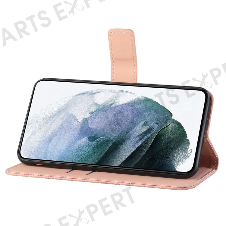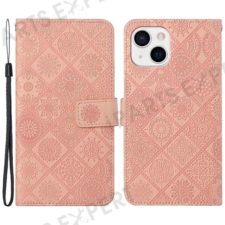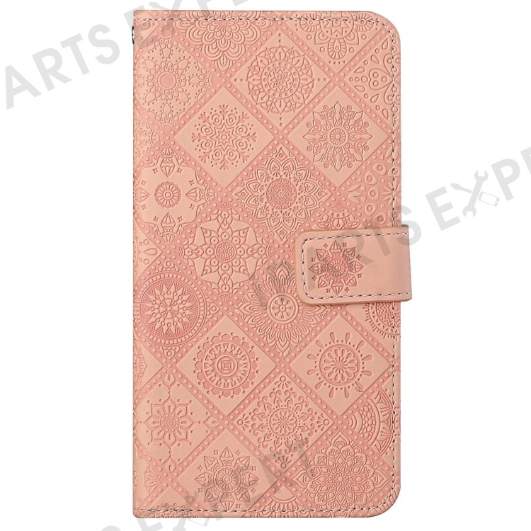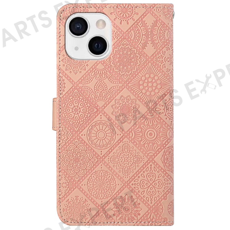 For iPhone 14 6.1 inch Ethnic Style Flower Imprinted Case Anti-scratch PU Leather Stand Wallet Feature Phone Shell - Pink