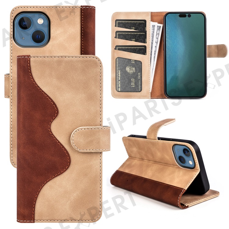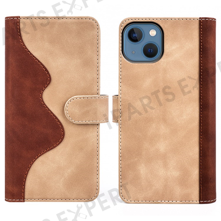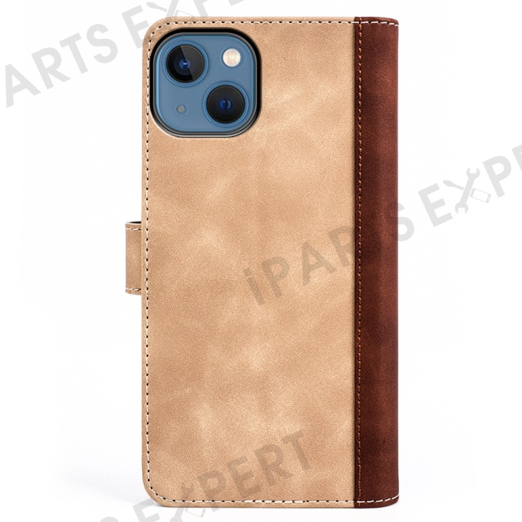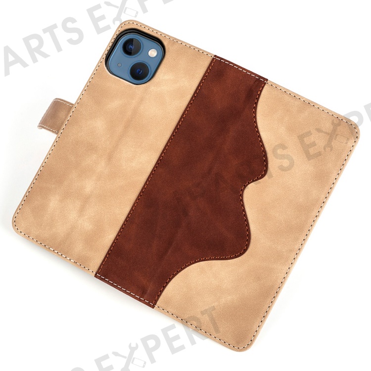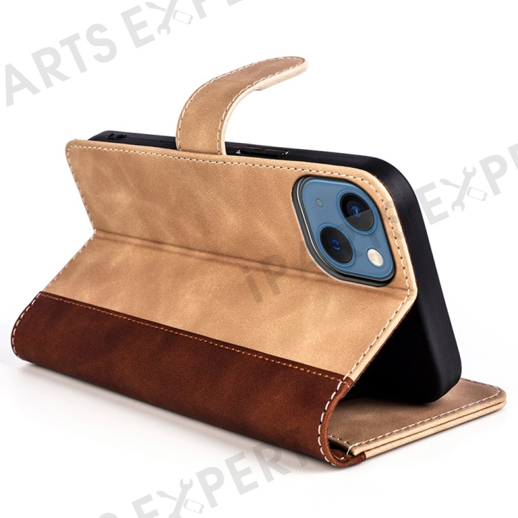 For iPhone 14 6.1 inch Fall Proof Splicing Design Protective Case PU Leather Wallet Stand Phone Shell - Yellow
