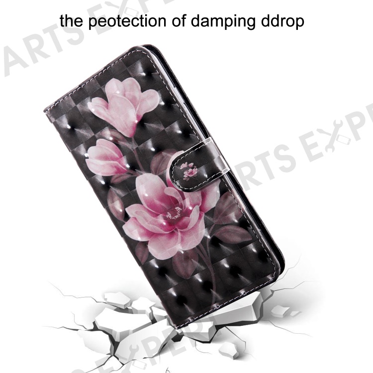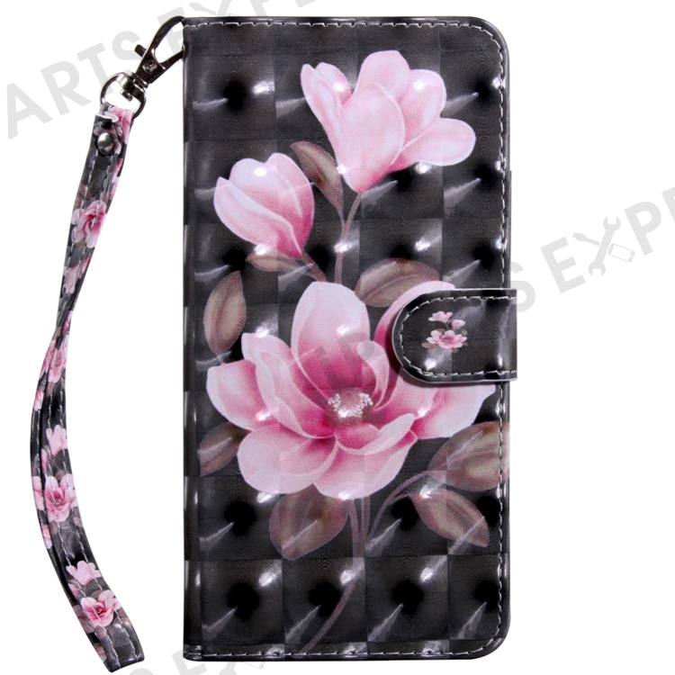 For iPhone 14 6.1 inch PU Leather Case Stand Function 3D Pattern Printed Magnet Closure Wallet Phone Cover with Strap - Pink Flower