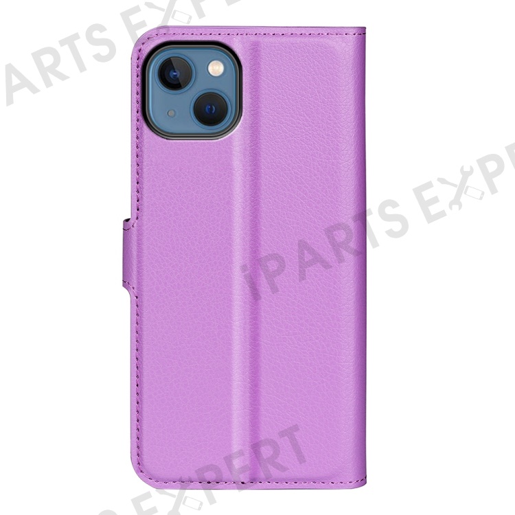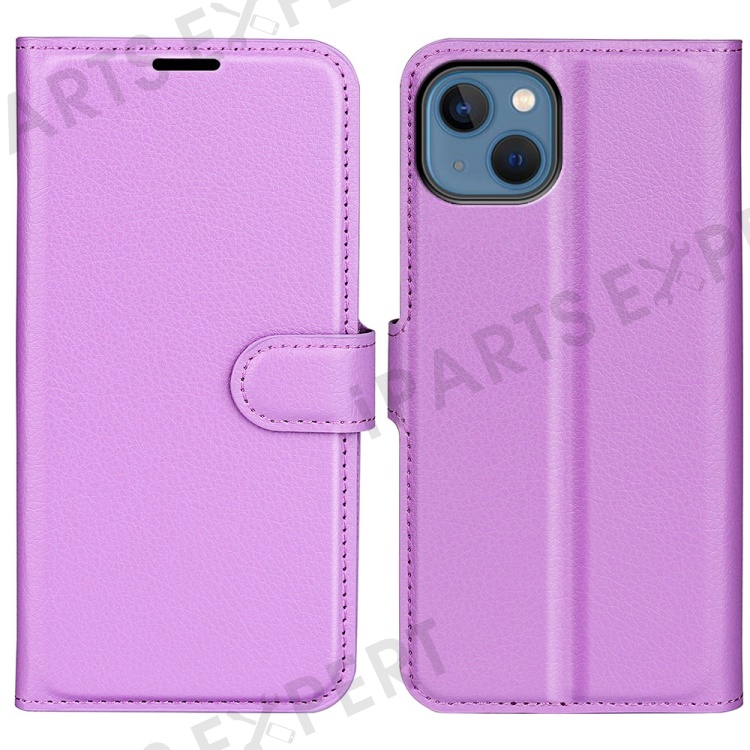 For iPhone 14 6.1 inch PU Leather Wallet Phone Case Litchi Texture Stand All-inclusive Protection Shell - Purple