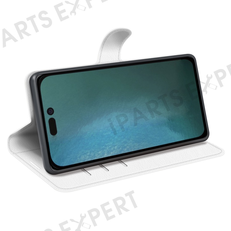 For iPhone 14 6.1 inch PU Leather Wallet Phone Case Litchi Texture Stand All-inclusive Protection Shell - White