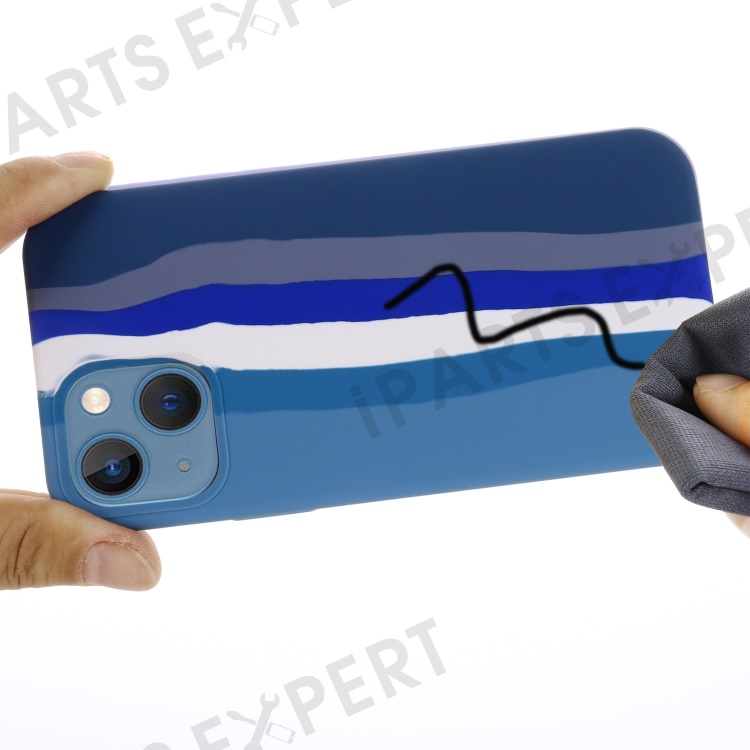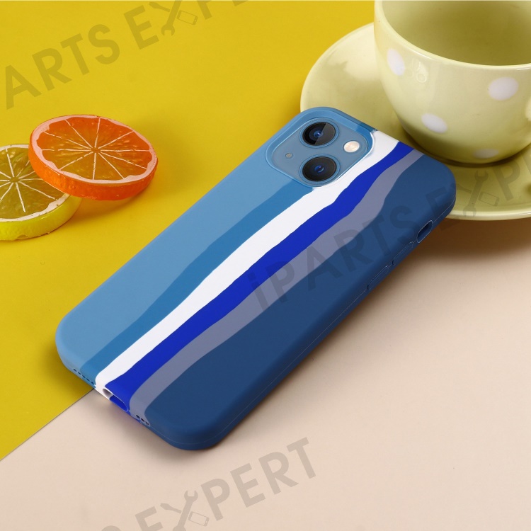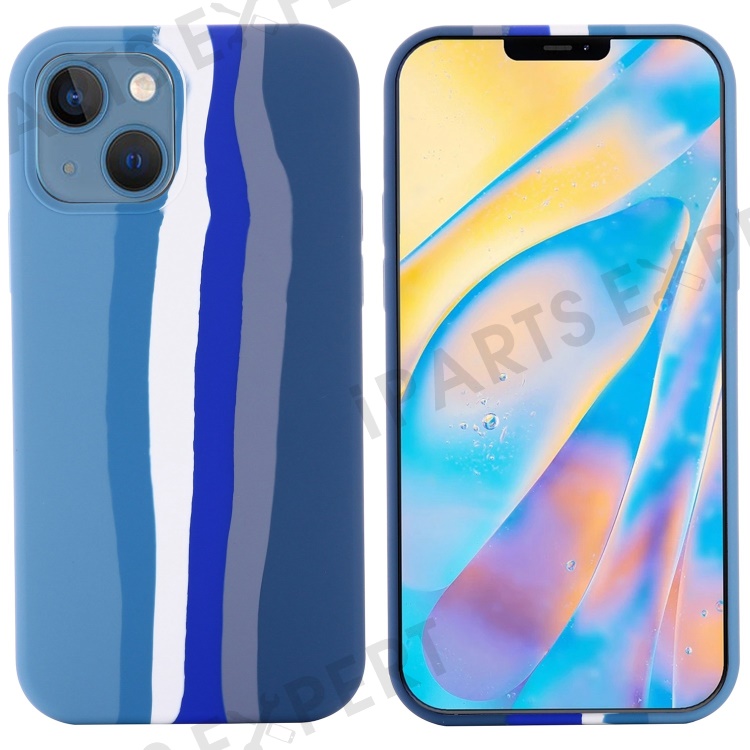 For iPhone 14 6.1 inch Rainbow Design Liquid Silicone Phone Cover Protective Back Case - Blue