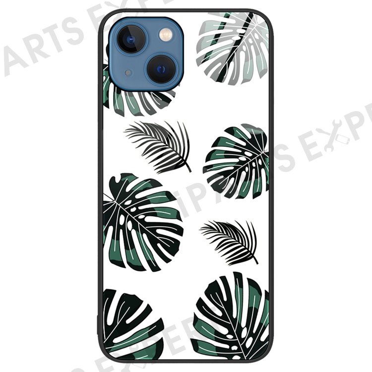 For iPhone 14 6.1 inch Shock Absorption Pattern Printing Tempered Glass Phone Case Hard PC+Soft TPU Cellphone Cover - Leaves