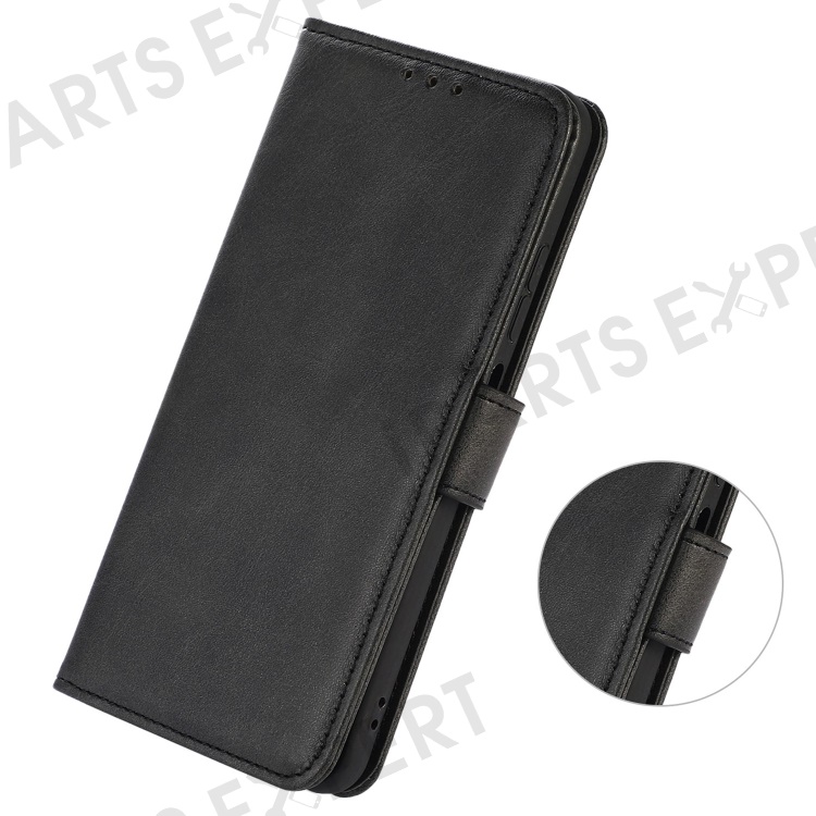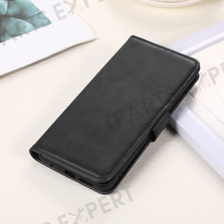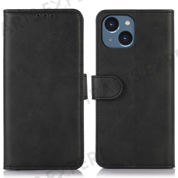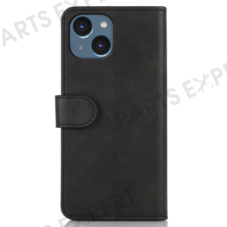 For iPhone 14 6.1 inch Shockproof Phone Cover Textured PU Leather Stand Wallet Scratch Resistant Mobile Phone Case Magnetic Design Protective Shell - Black