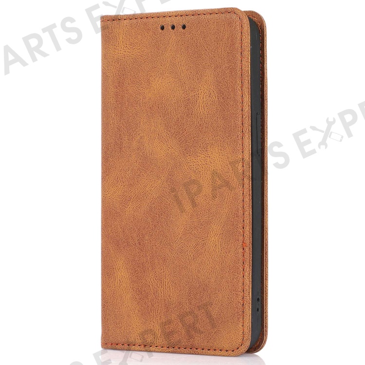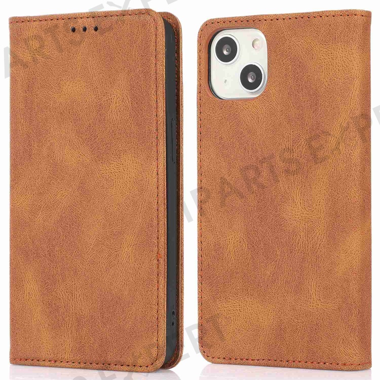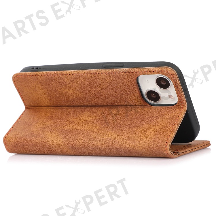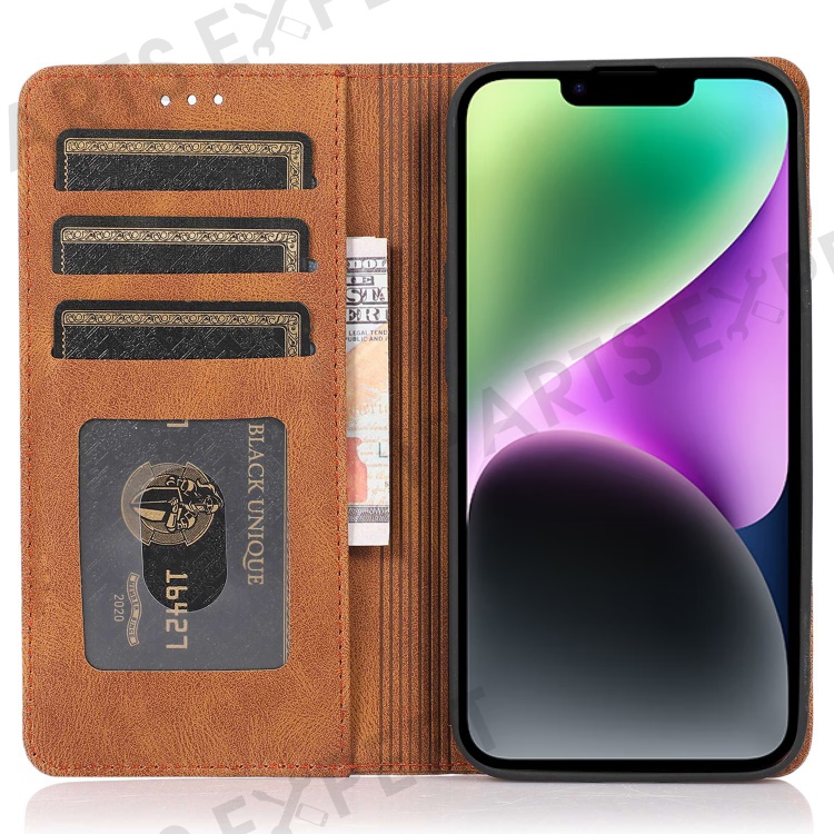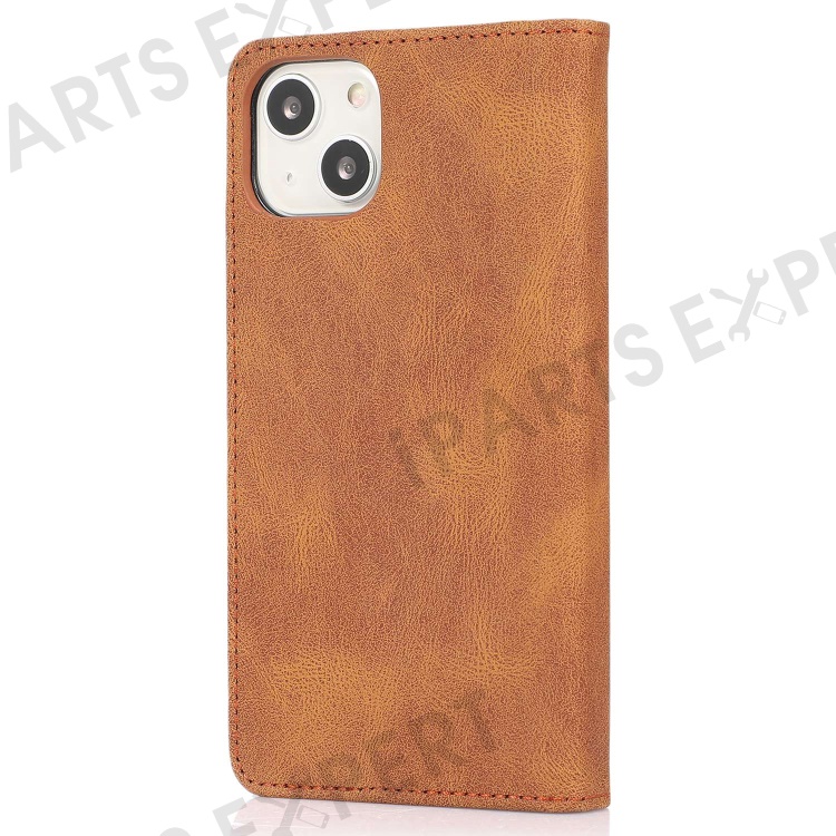 For iPhone 14 6.1 inch Wallet Phone Case Magnetic Closure PU Leather Anti-Drop Cover with Stand - Brown