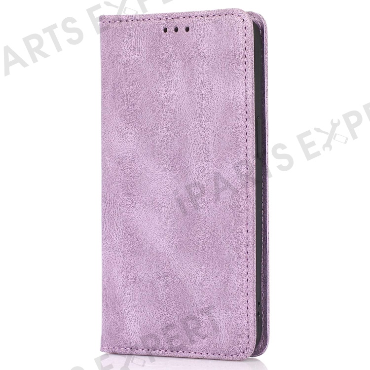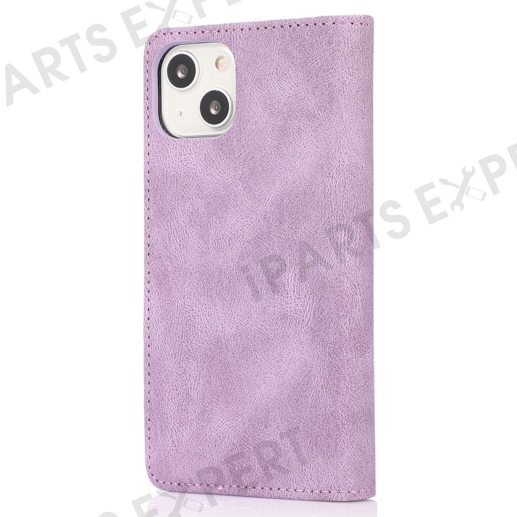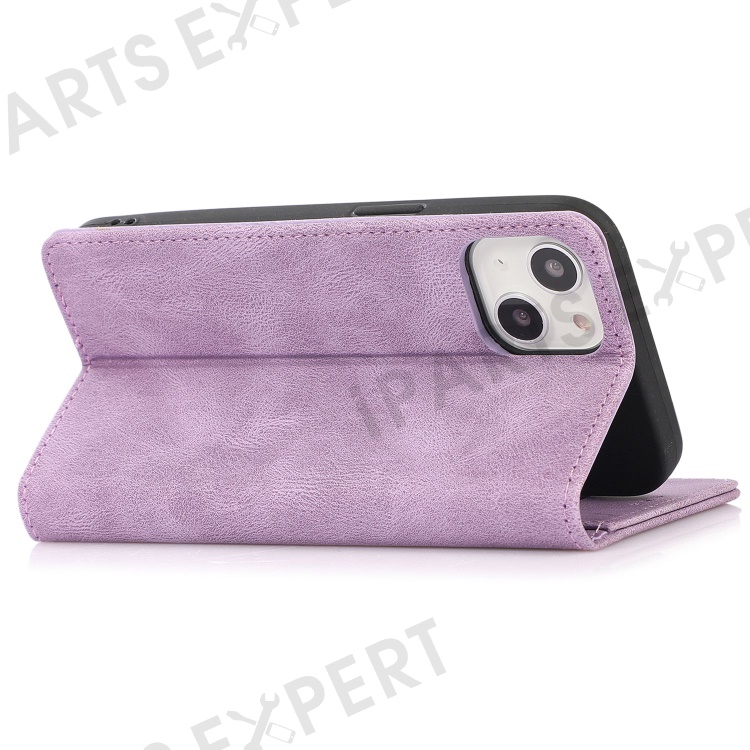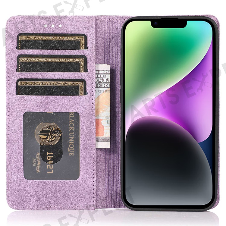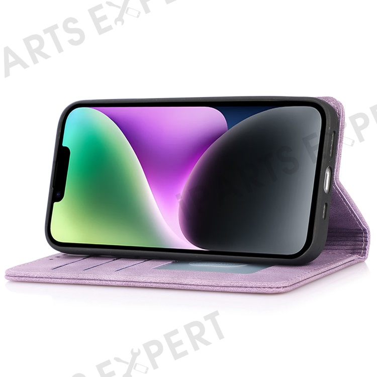 For iPhone 14 6.1 inch Wallet Phone Case Magnetic Closure PU Leather Anti-Drop Cover with Stand - Purple