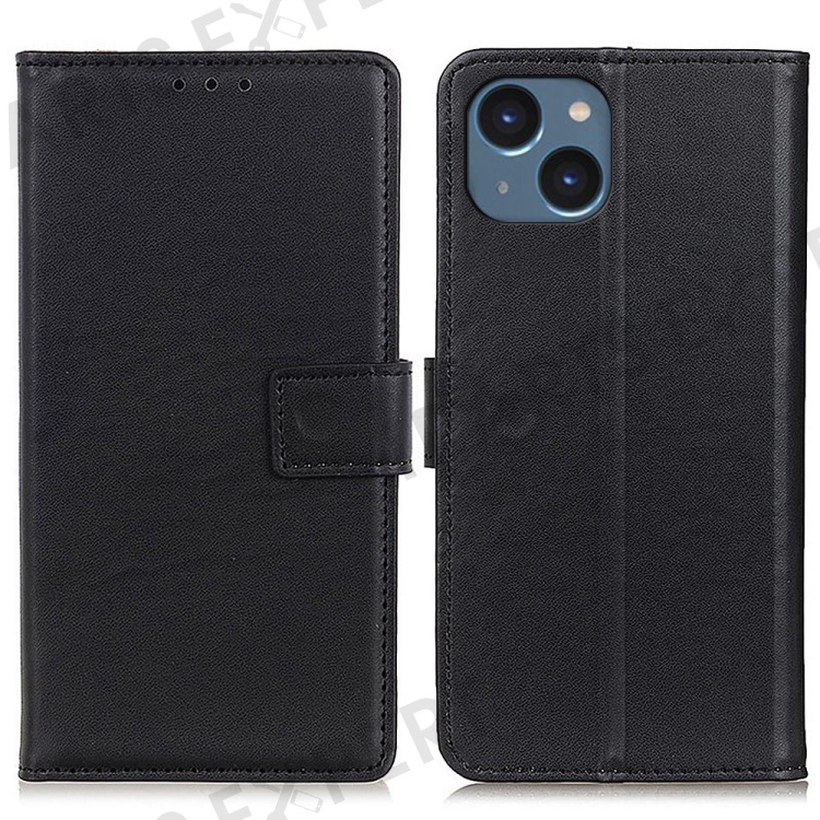 For iPhone 14 6.1 inch Wallet Phone Case PU Leather Stand Function Magnetic Folio Flip Folding Cover - Black