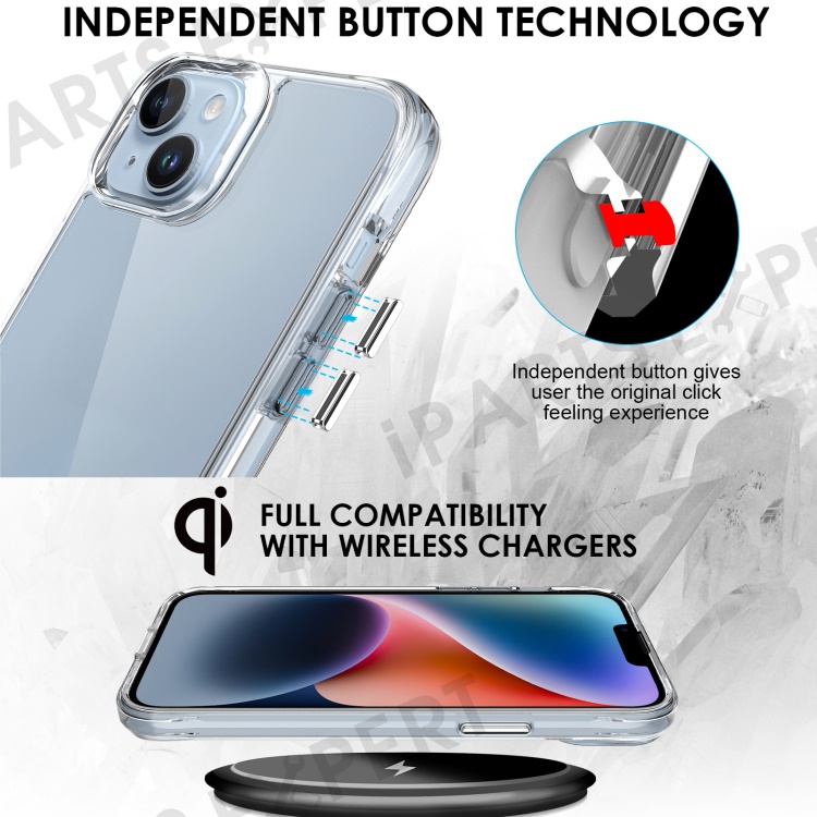 For iPhone 14 Anti-yellowing Ultra Clear PC+TPU Phone Case Electroplating Independent Button Back Shell