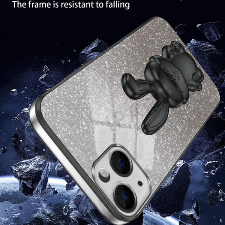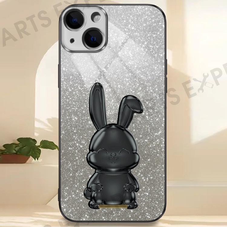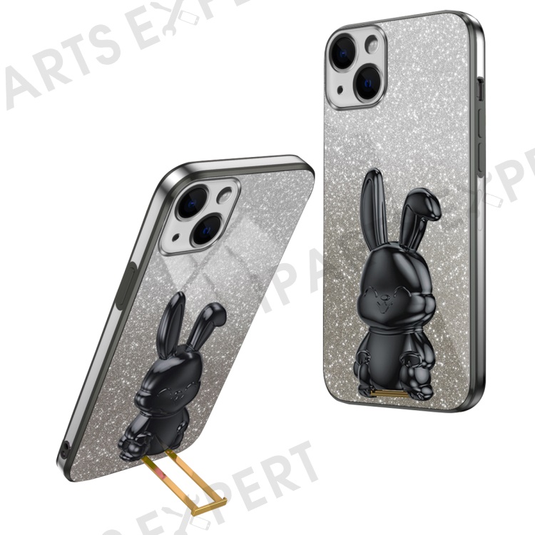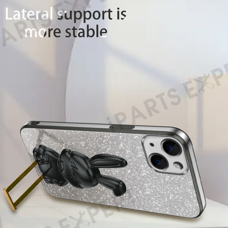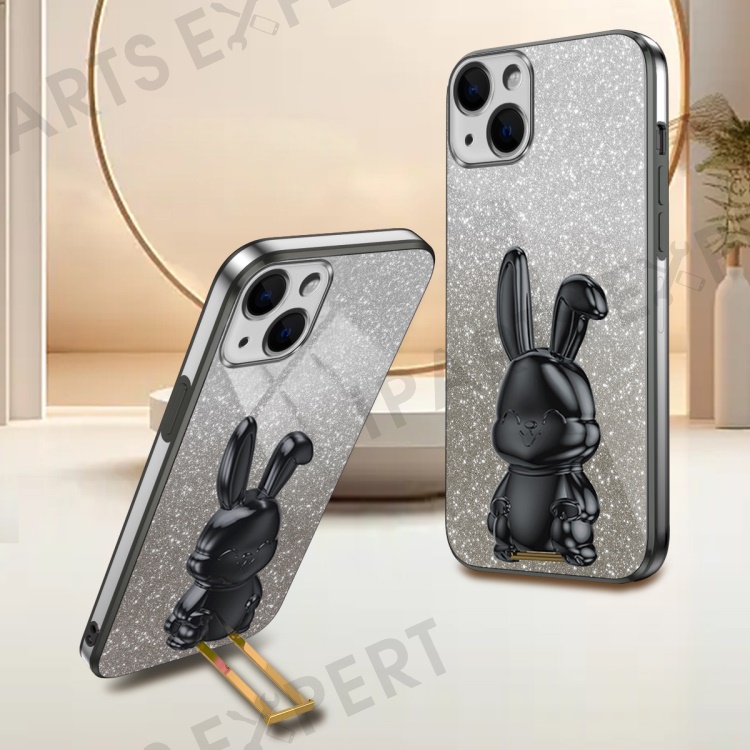 For iPhone 14 Cartoon Rabbit Protective Case Bump Proof Phone Cover with Kickstand - Black