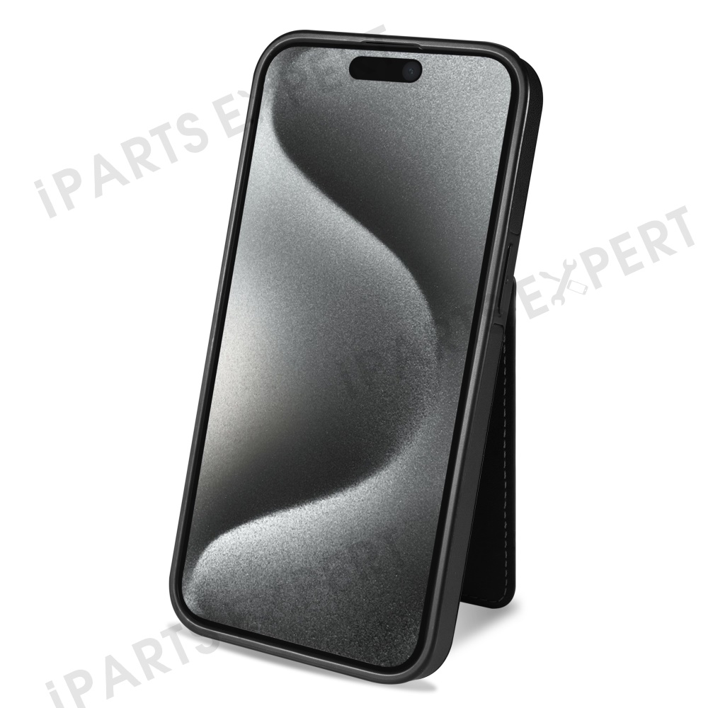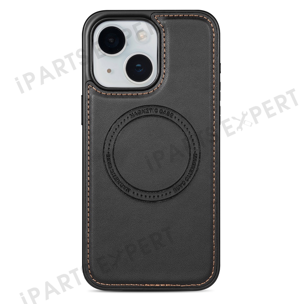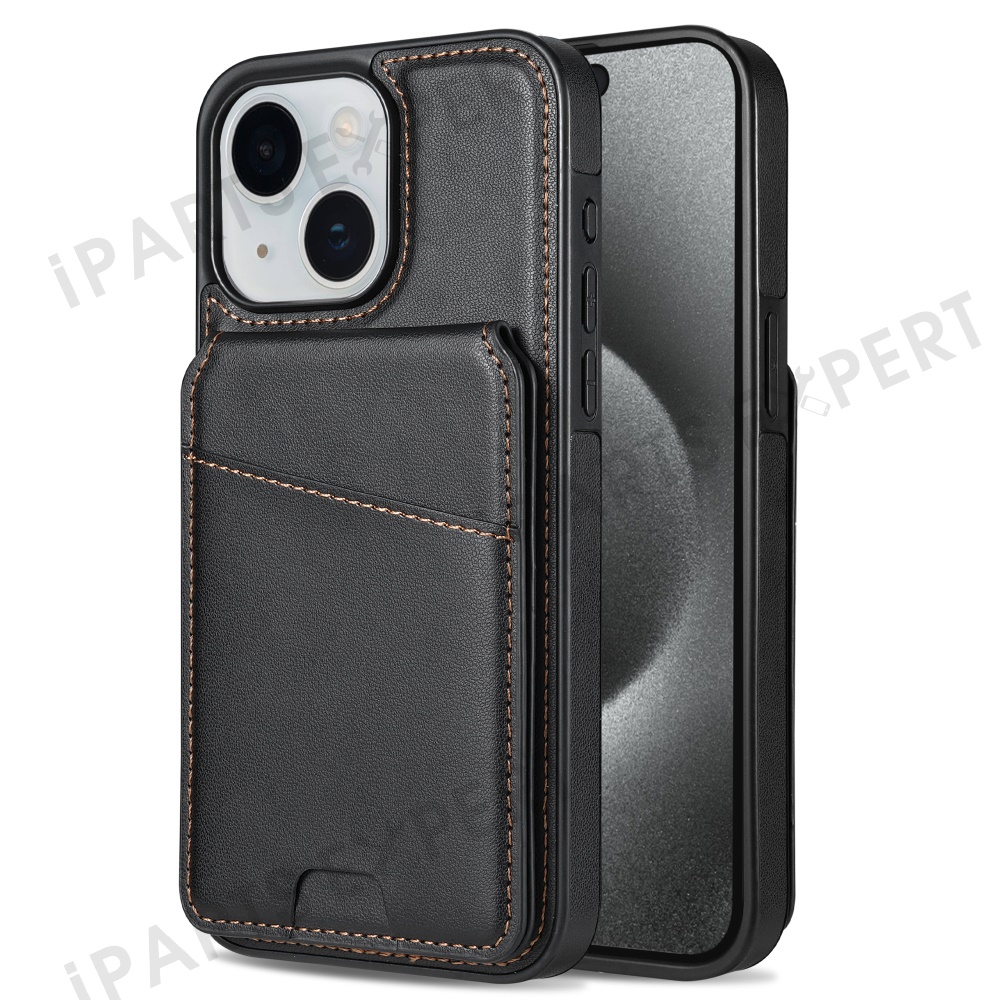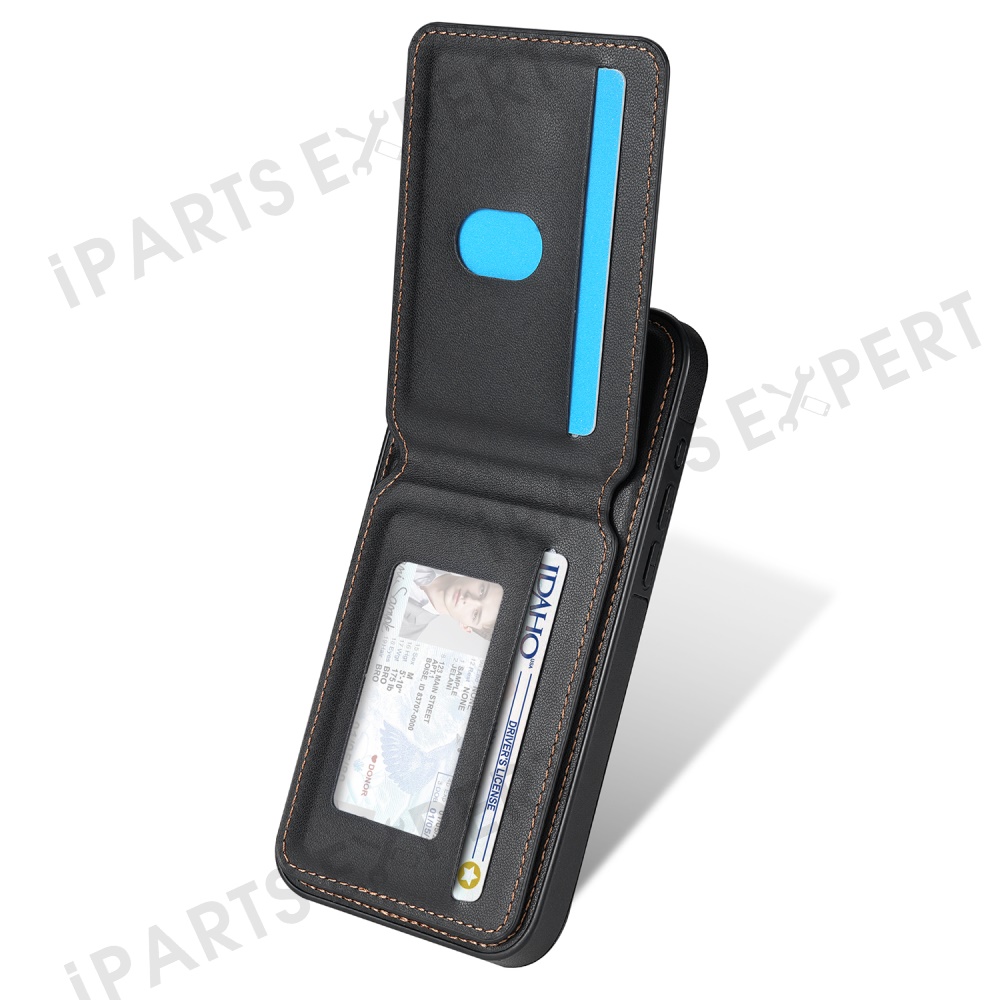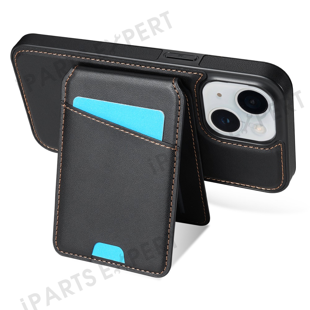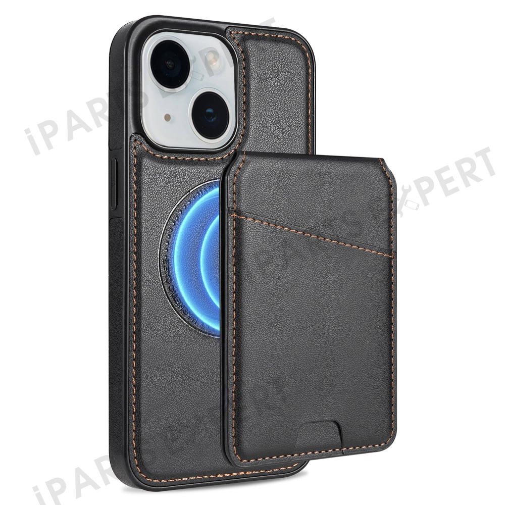 For iPhone 14 Case Compatible with MagSafe Detachable Card Holder Kickstand Leather Phone Back Cover - Black
