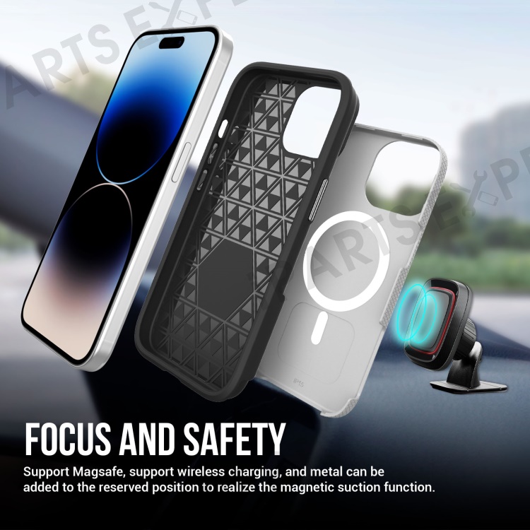 For iPhone 14 Case Corners Shockproof TPU+PC Magnetic Phone Cover - Silver