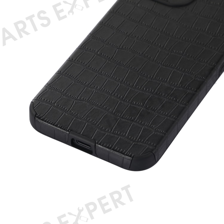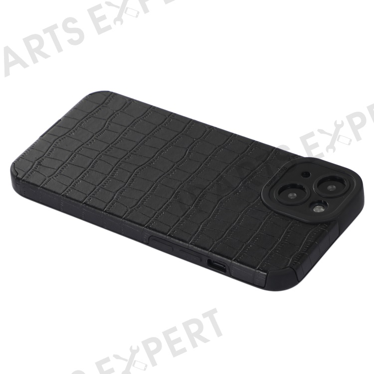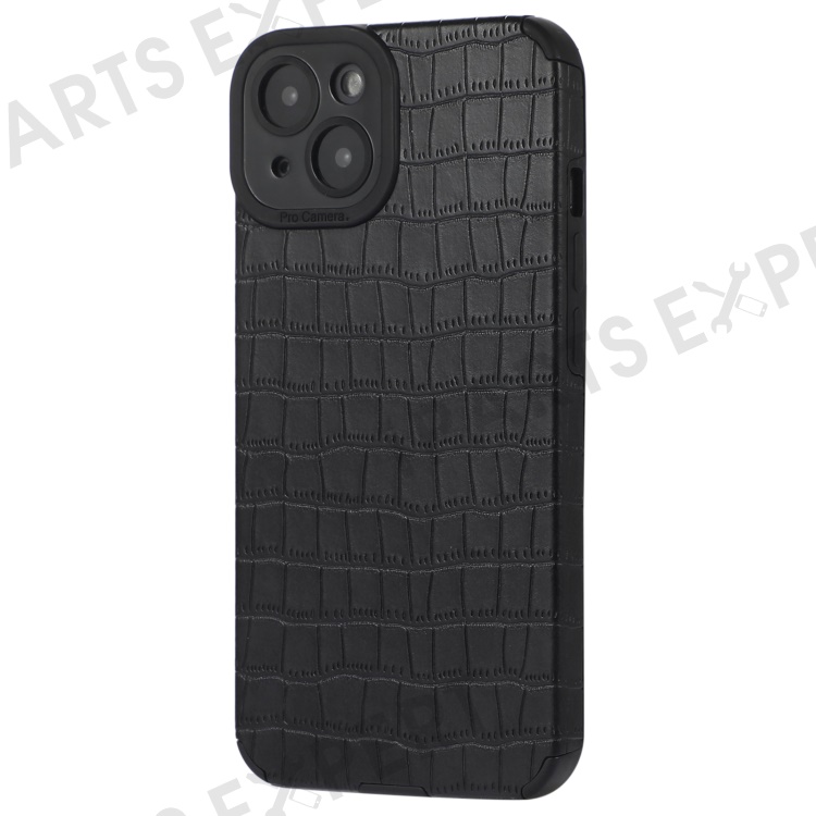 For iPhone 14 Case Crocodile Texture Anti-scratch PU Leather Coated TPU Cell Phone Cover - Black