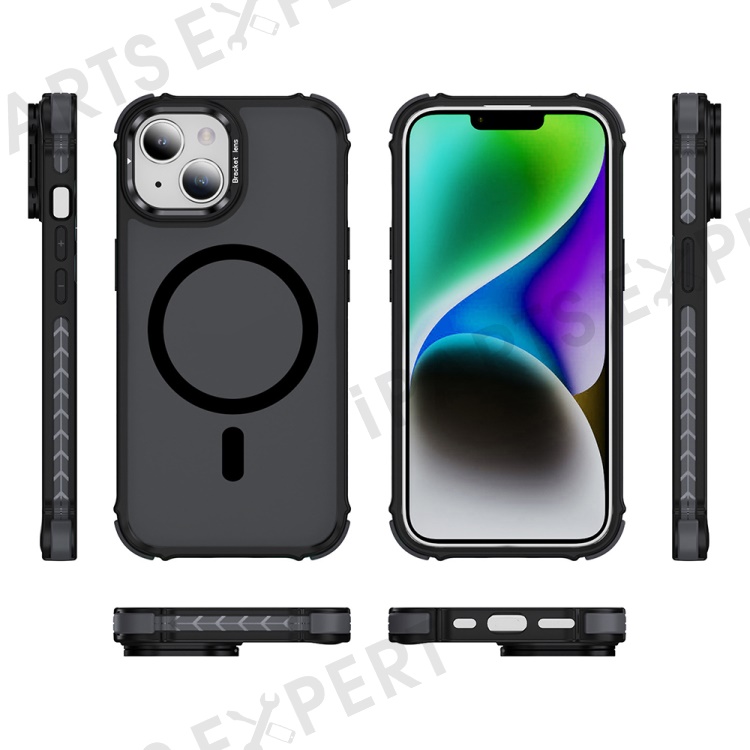 For iPhone 14 Case with Lens Kickstand Matte Back Cover Compatible with MagSafe - Black