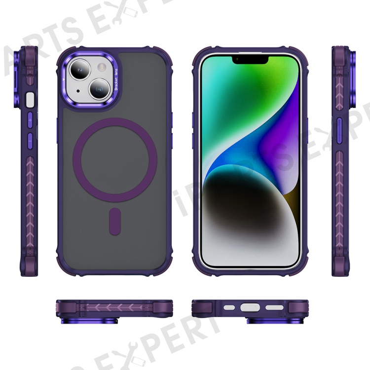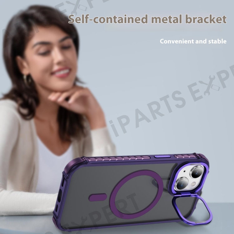 For iPhone 14 Case with Lens Kickstand Matte Back Cover Compatible with MagSafe - Purple