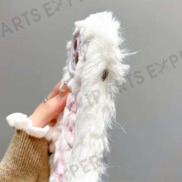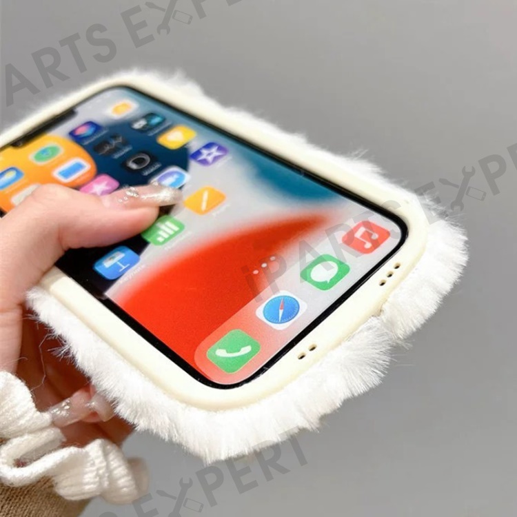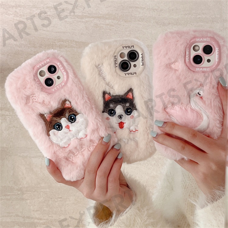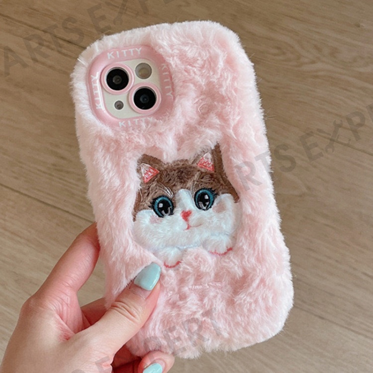 For iPhone 14 Cell Phone Case Plush Cartoon Animal Embroidery TPU Cover - Kitty