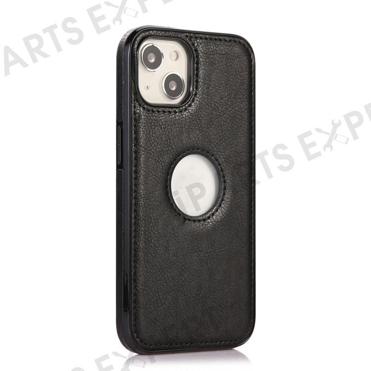 For iPhone 14 Cell Phone Case TPU+PU Leather Anti-scratch Cover with Logo View Hole - Black