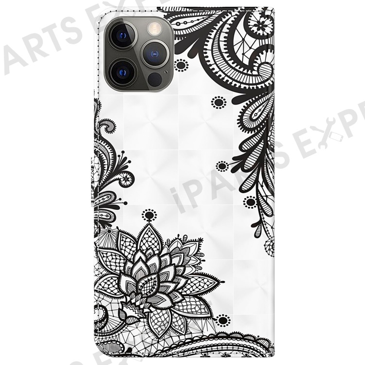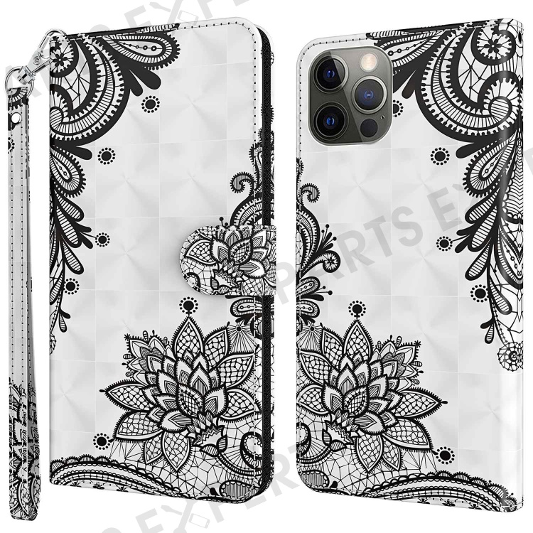 For iPhone 14 Plus 6.7 inch Anti-fall PU Leather Phone Case Stand 3D Pattern Printed Magnet Closure Wallet Shockproof Phone Cover with Strap - Lace Flower
