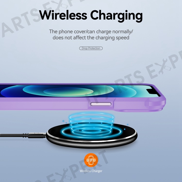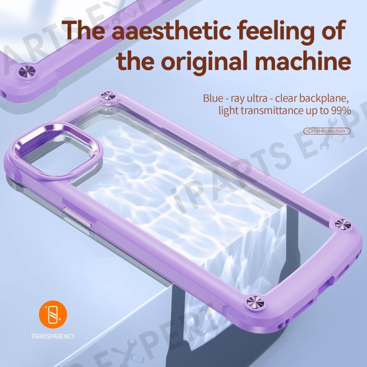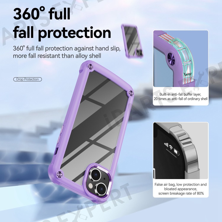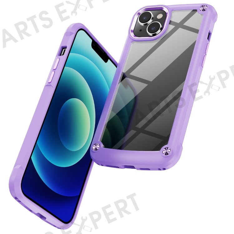 For iPhone 14 Plus 6.7 inch Phone Case Anti-scratch PC+TPU Mobile Phone Hybrid Back Cover Support Wireless Charging - Purple