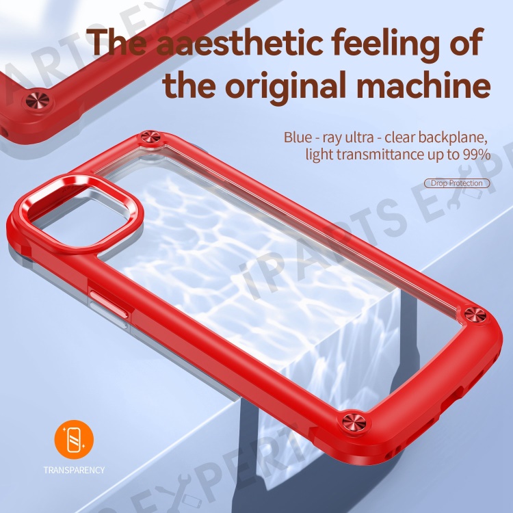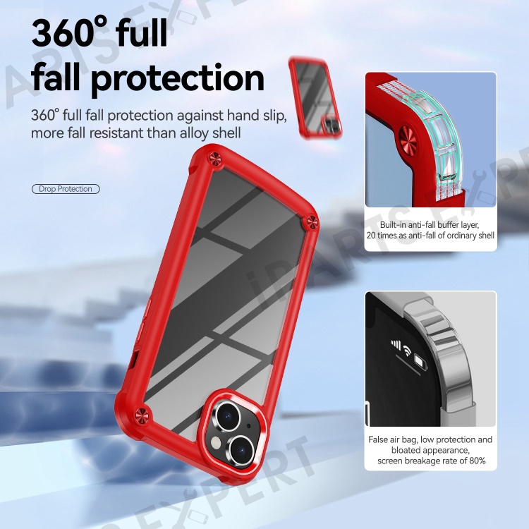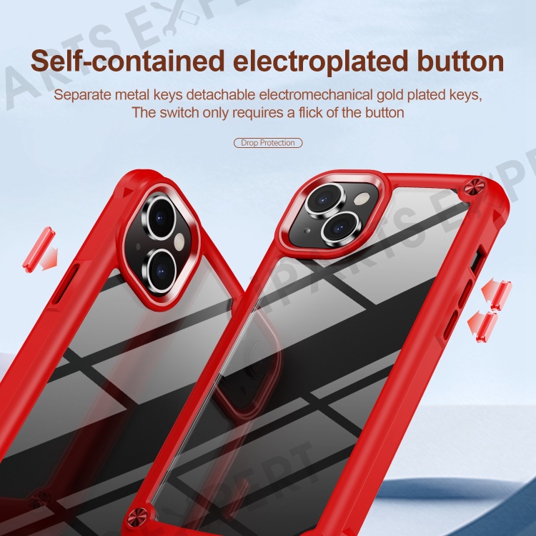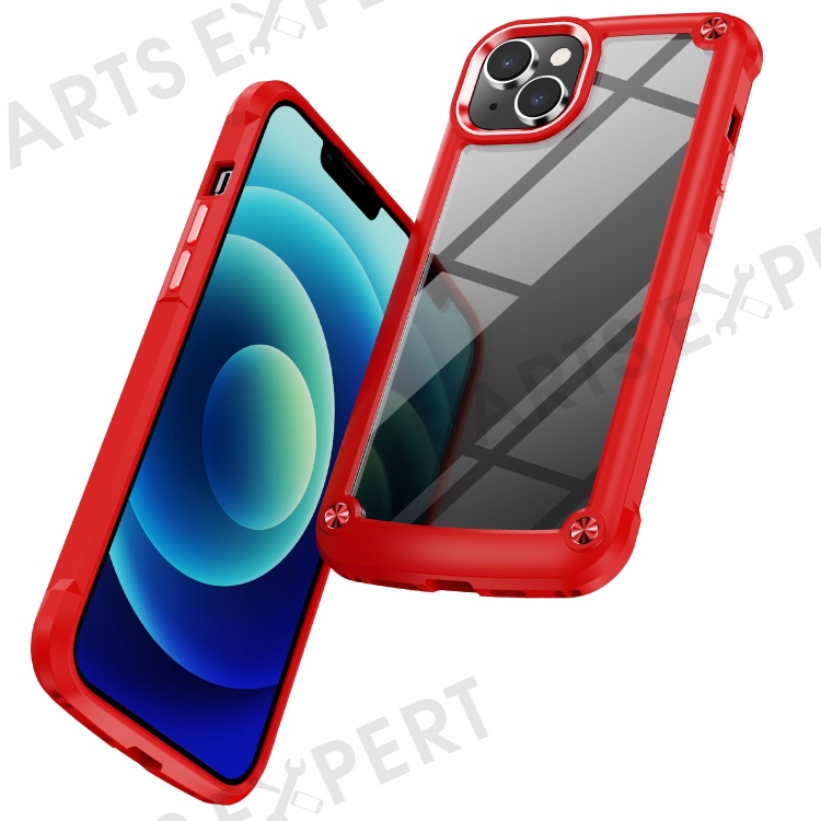 For iPhone 14 Plus 6.7 inch Phone Case Anti-scratch PC+TPU Mobile Phone Hybrid Back Cover Support Wireless Charging - Red