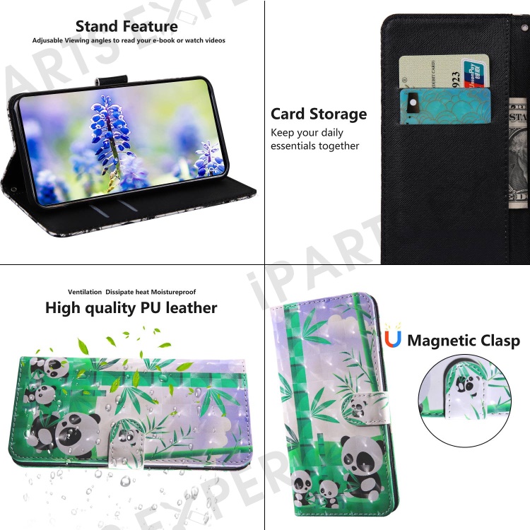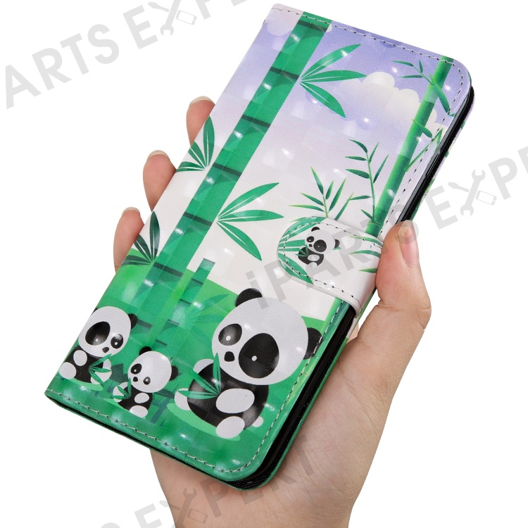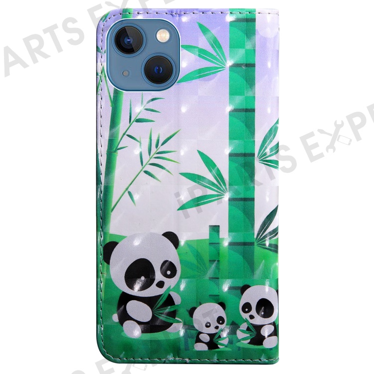 For iPhone 14 Plus 6.7 inch PU Leather 3D Pattern Printing Wallet Case Magnetic Closure Stand Protective Flip Cover with Strap - Pandas