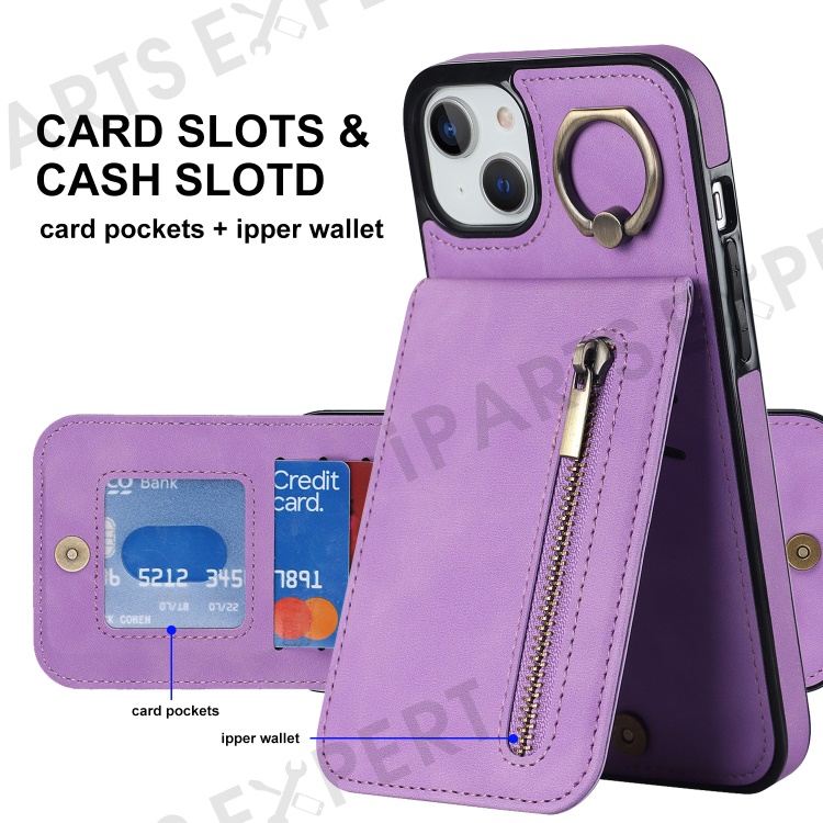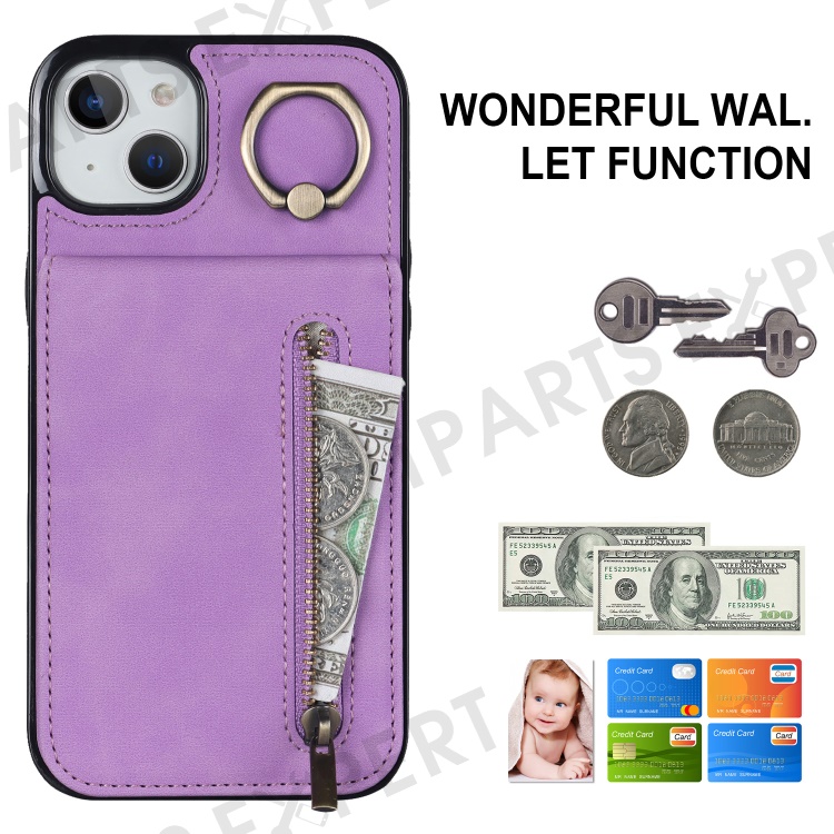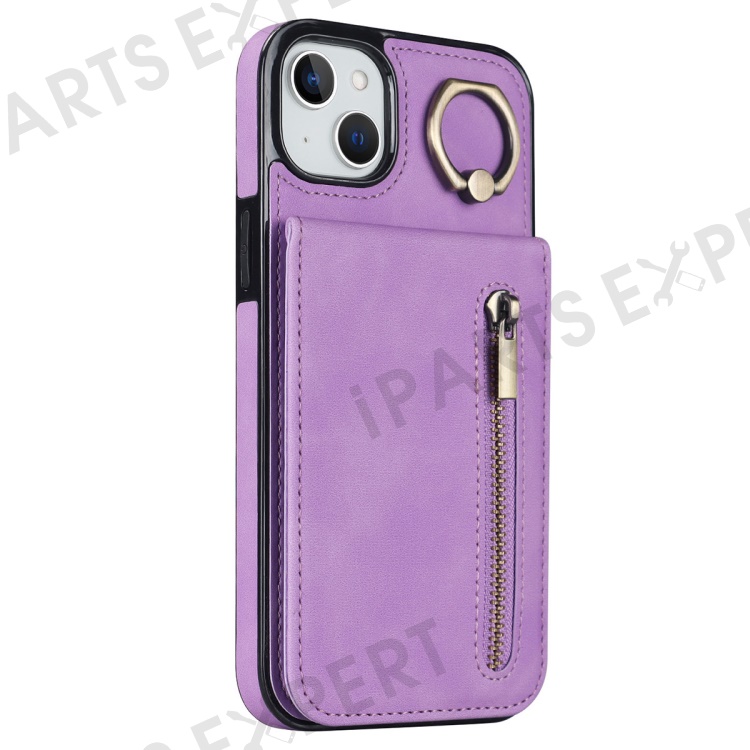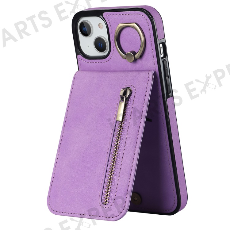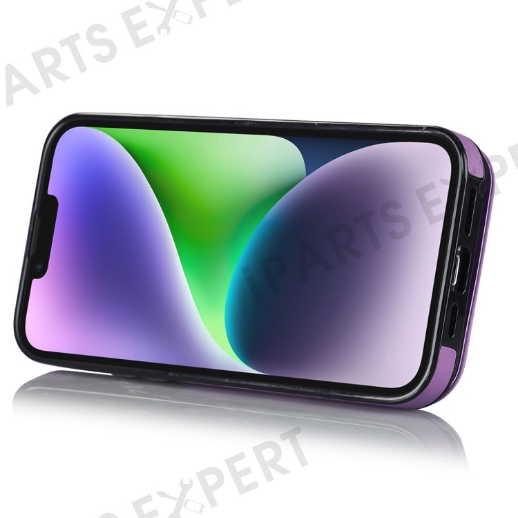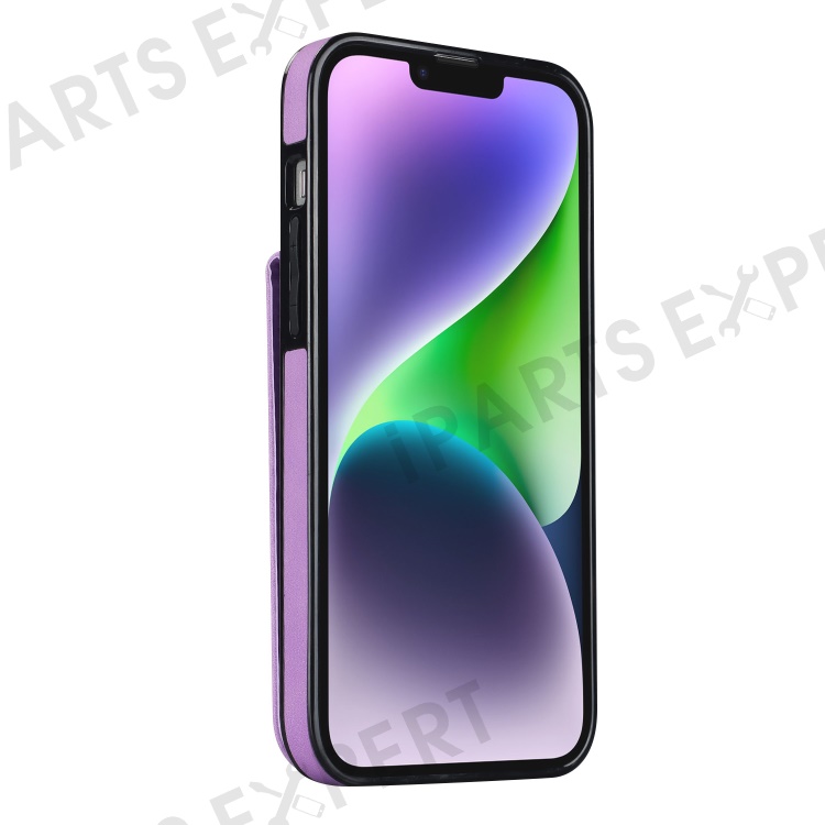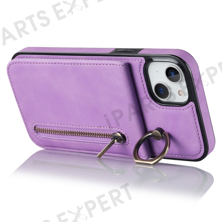 For iPhone 14 Plus Anti-drop Phone Case RFID Blocking Wallet Retro PU+TPU Cellphone Kickstand Cover - Purple