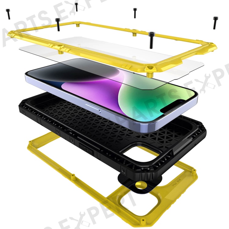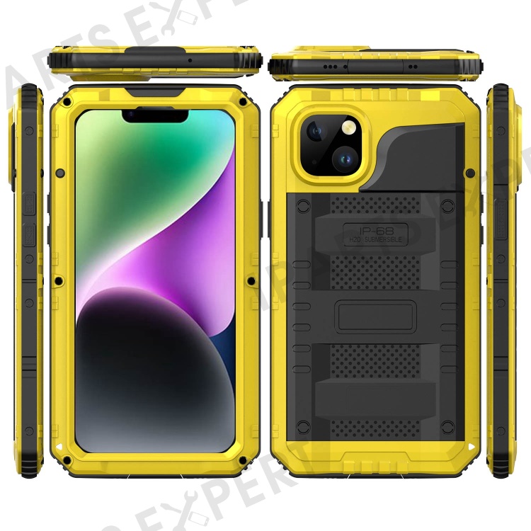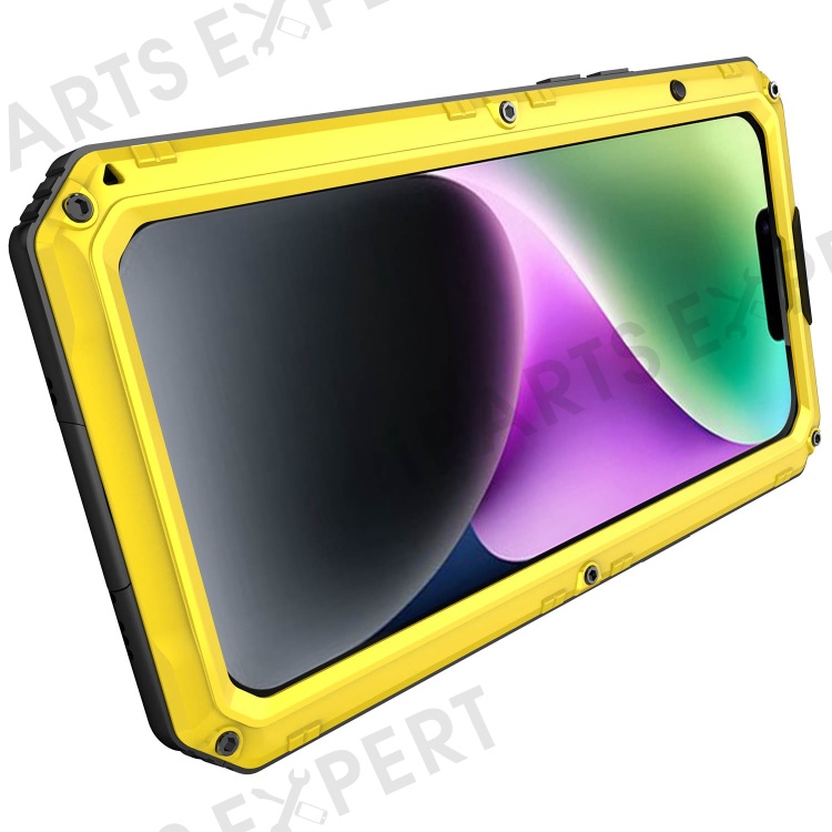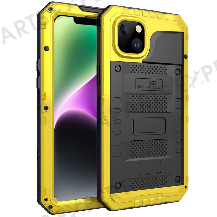 For iPhone 14 Plus IP68 2m Waterproof Drop-proof Cover Metal + Silicone Underwater Full Protection Case - Yellow