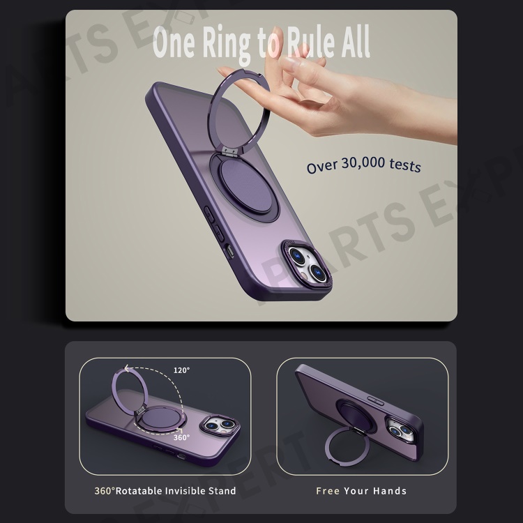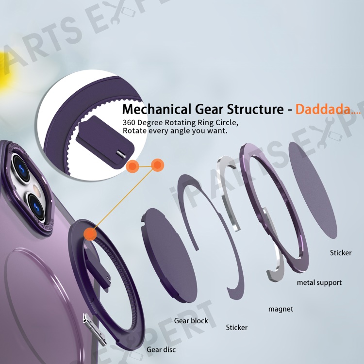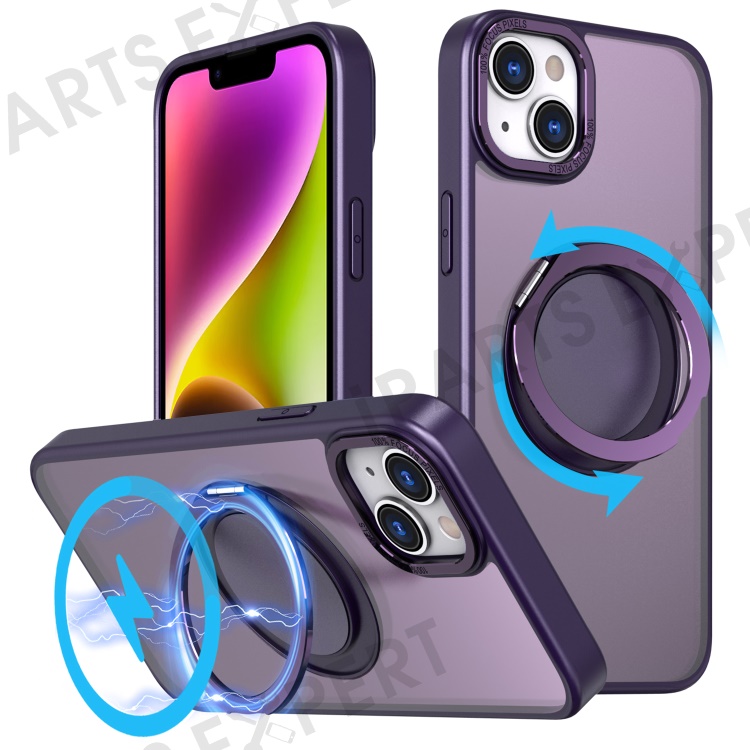 For iPhone 14 Plus Magnetic Phone Case Hidden Gear Rotary Ring Kickstand - Purple