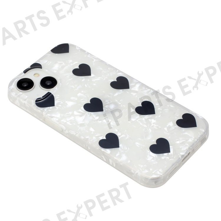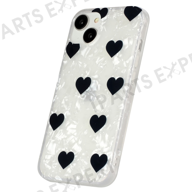 For iPhone 14 Plus TPU Case IMD Pattern Shockproof Mobile Phone Cover - Black Love Heart