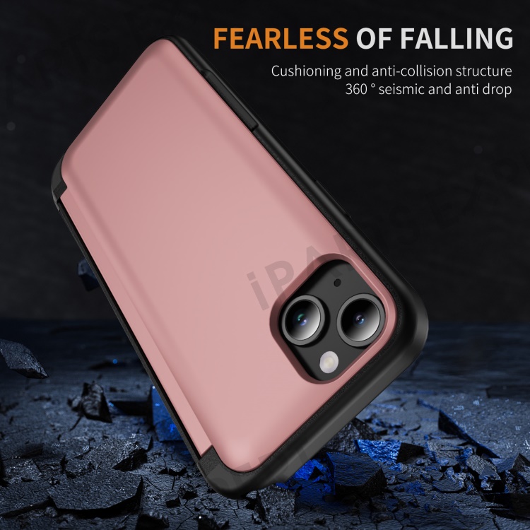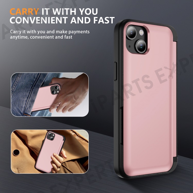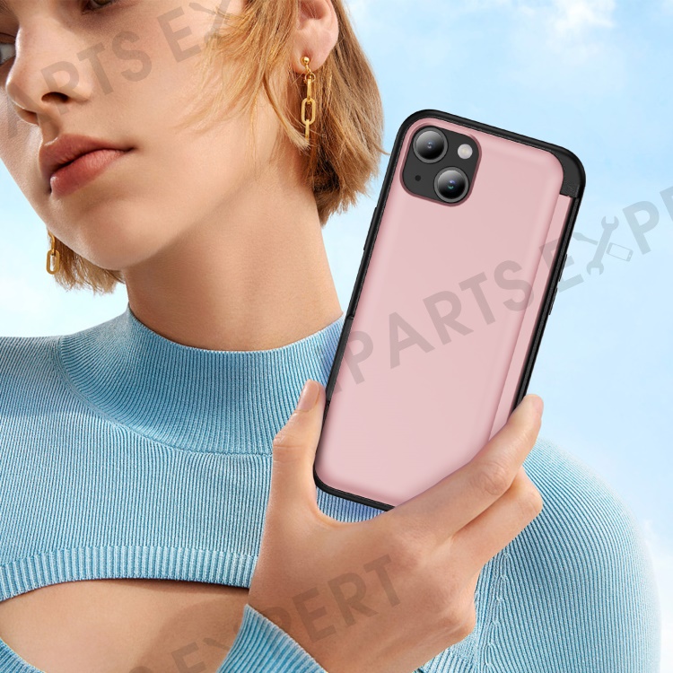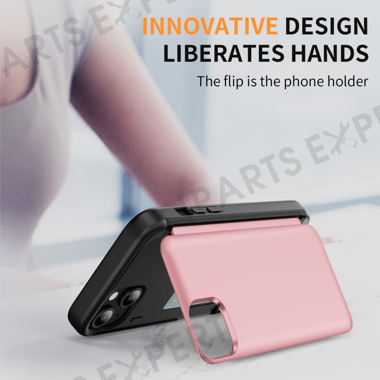 For iPhone 14 Plus TPU+PC Case Card Holder Flip Kickstand Phone Cover - Pink