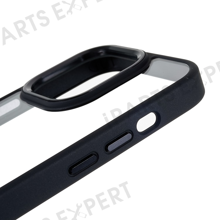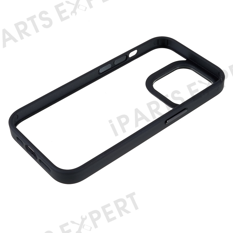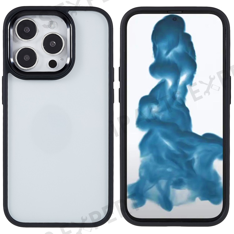 For iPhone 14 Pro 6.1 inch Clear Back PC + TPU Phone Cover Metal Camera Lens Frame Anti-dirt Metal Buttons Case - Black