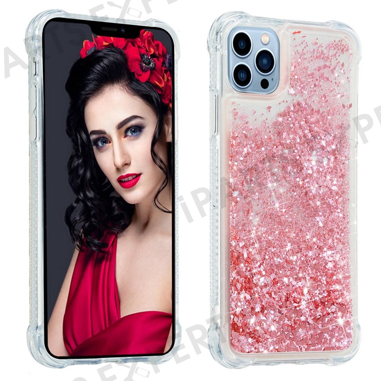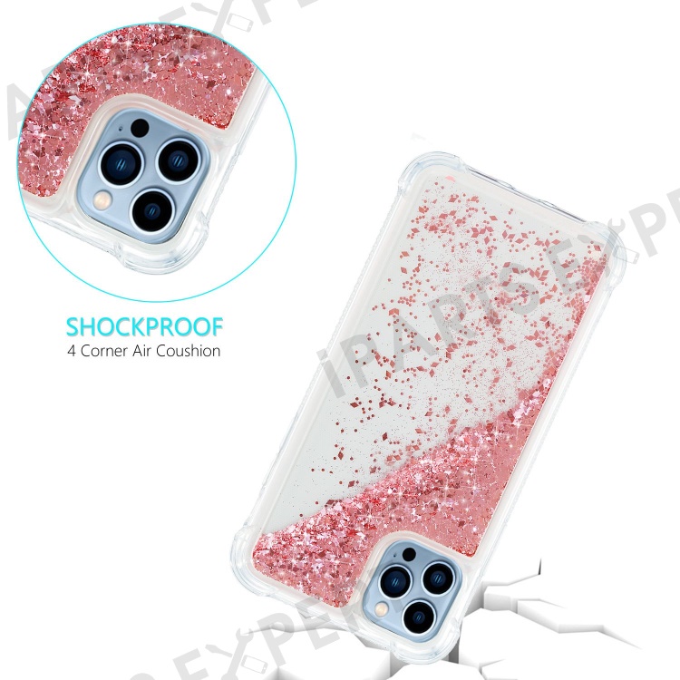 For iPhone 14 Pro 6.1 inch Glitter Quicksand Case Shiny Floating Liquid Transparent Soft TPU Phone Cover - Pink
