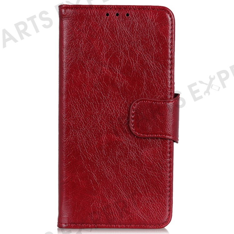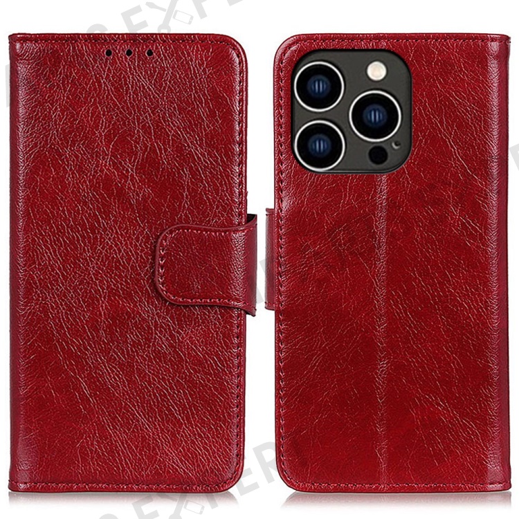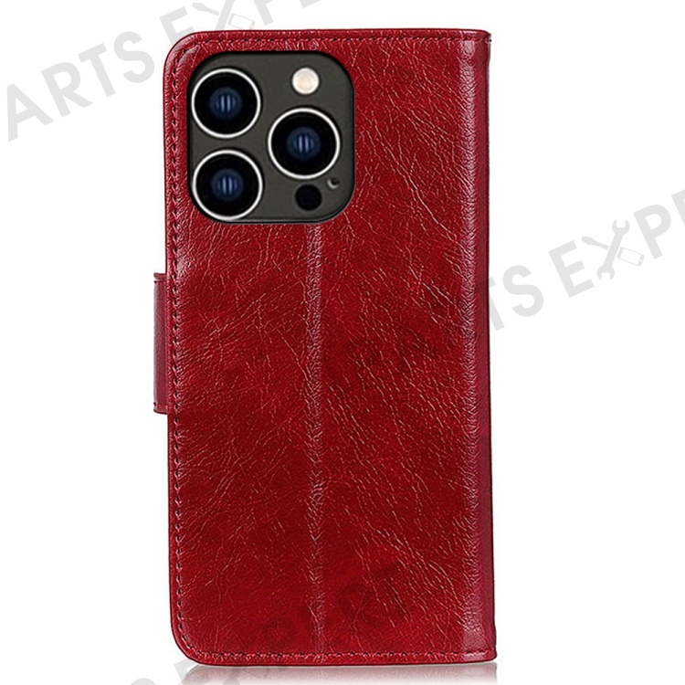 For iPhone 14 Pro 6.1 inch Split Leather Nappa Texture Phone Case with Magnetic Closure Stand Wallet Shockproof Phone Cover - Red