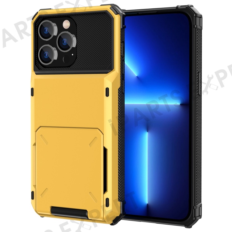 For iPhone 14 Pro 6.1 inch TPU + PC Phone Case with Flip Card Holder Shockproof Phone Cover - Yellow