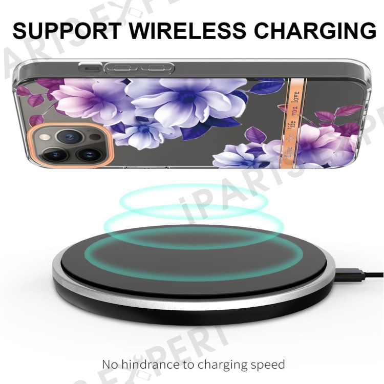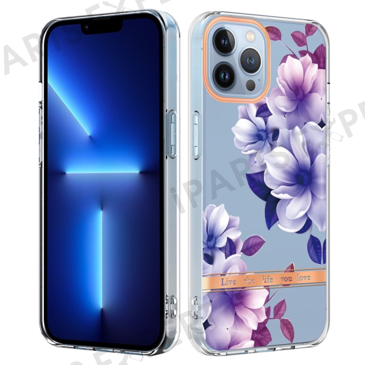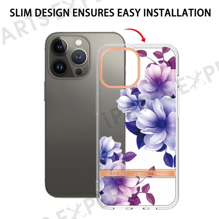 For iPhone 14 Pro Case IMD IML Flower Pattern Electroplated TPU Back Cover - HC004 Purple Begonia