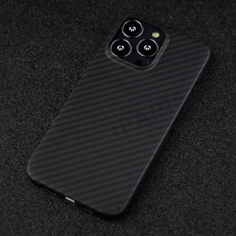 For iPhone 14 Pro Back Case 1500D Coarse Texture Aramid Fiber Protective Cover - Matte Black