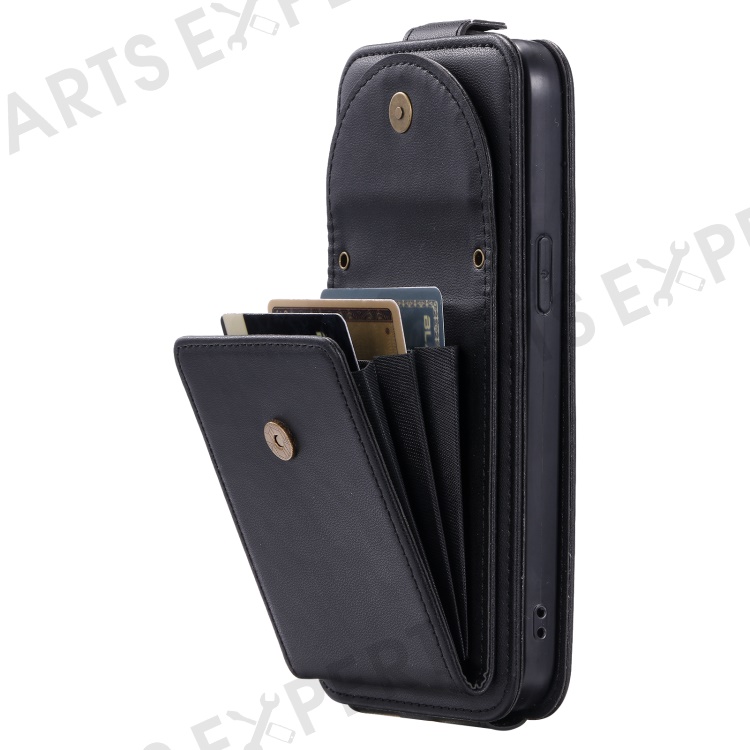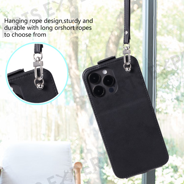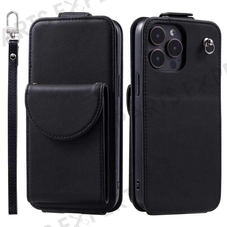 For iPhone 14 Pro Case Card Bag PU Leather Vertical Flip Phone Cover with Straps - Black