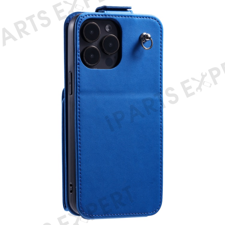 For iPhone 14 Pro Case Card Bag PU Leather Vertical Flip Phone Cover with Straps - Blue