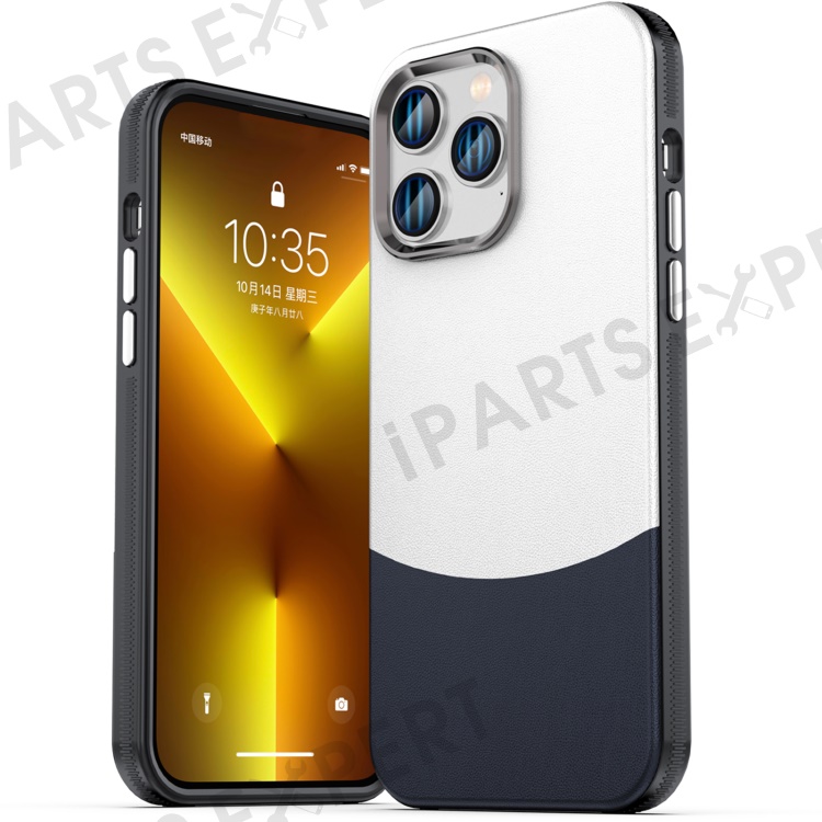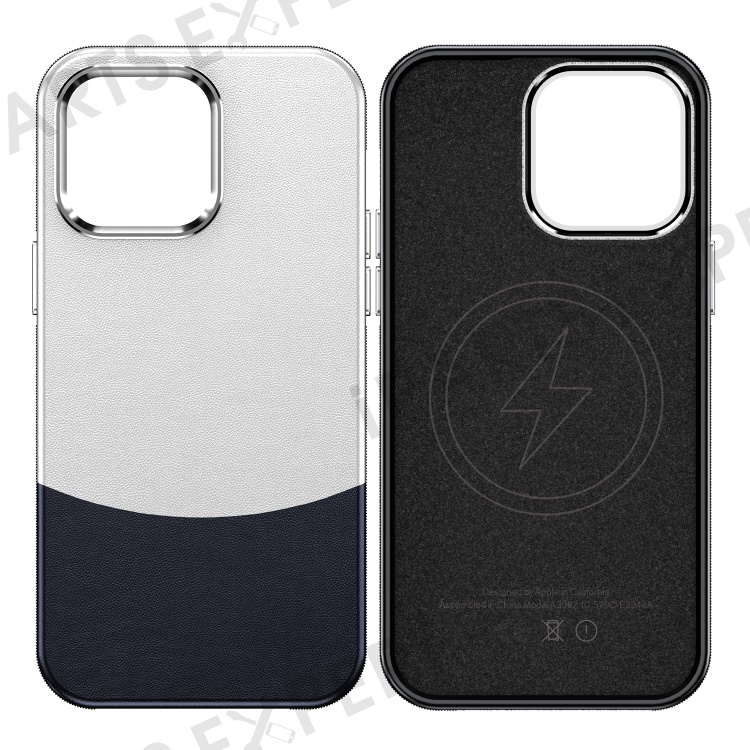 For iPhone 14 Pro Case Compatible with MagSafe Leather Phone Cover Splicing Color - Dark Blue