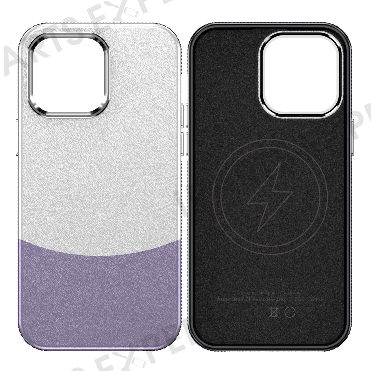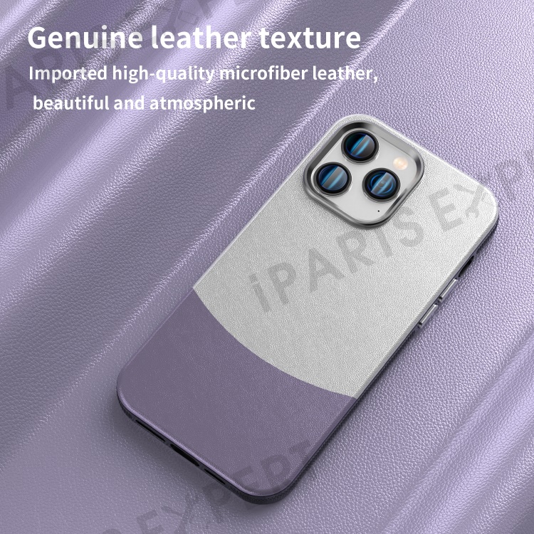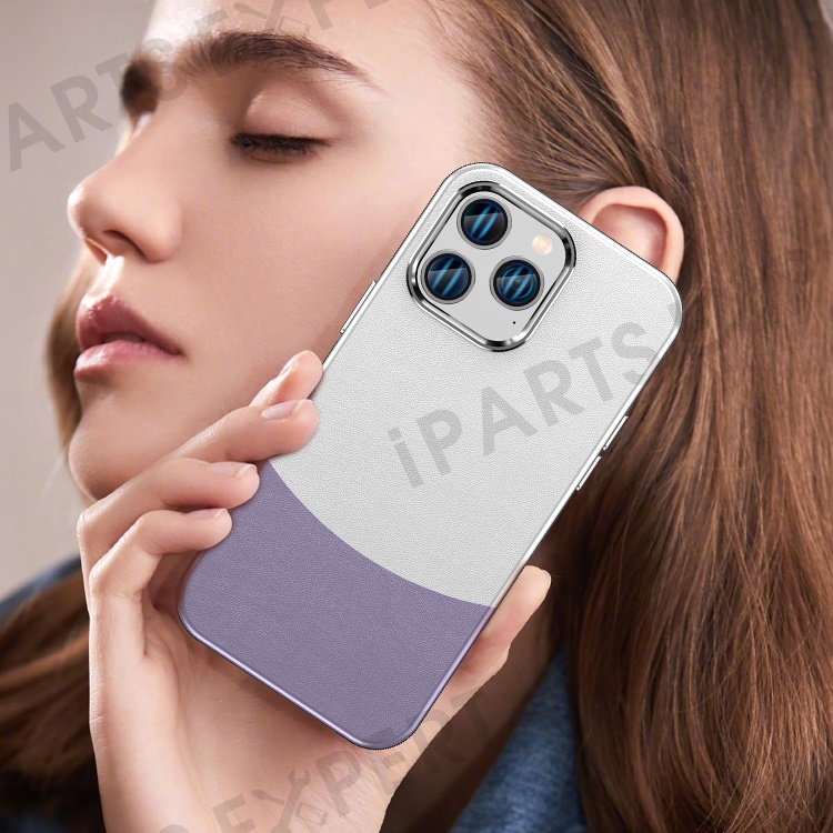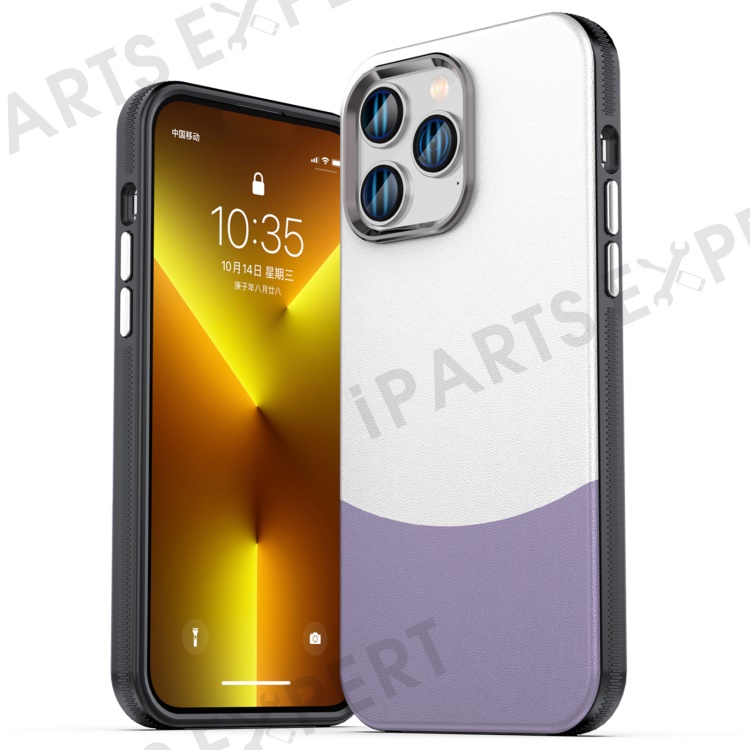 For iPhone 14 Pro Case Compatible with MagSafe Leather Phone Cover Splicing Color - Purple