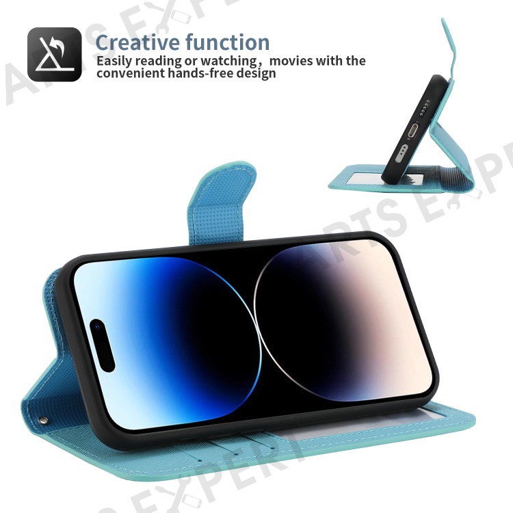 For iPhone 14 Pro Detachable TPU Back Case Cross Texture PU Leather Drop-proof Cover Flip Stand Wallet Shell - Blue