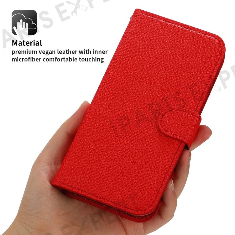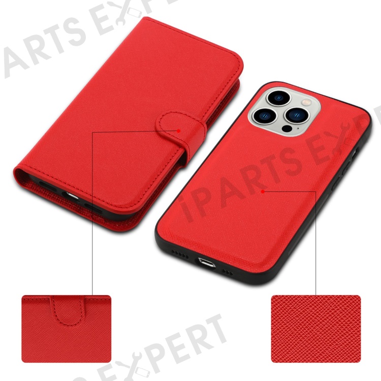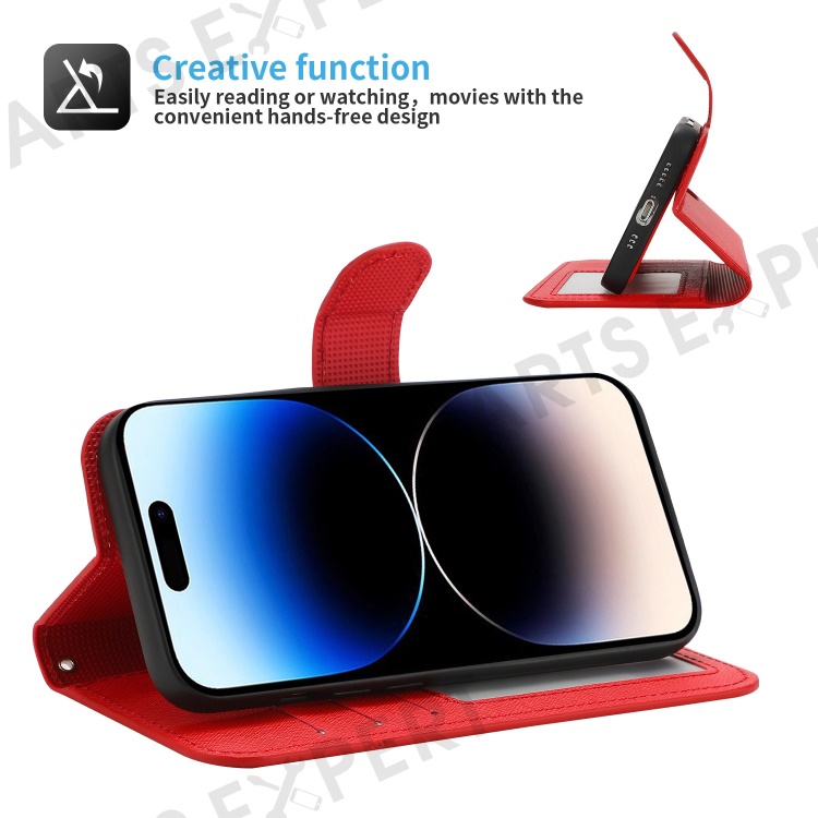 For iPhone 14 Pro Detachable TPU Back Case Cross Texture PU Leather Drop-proof Cover Flip Stand Wallet Shell - Red