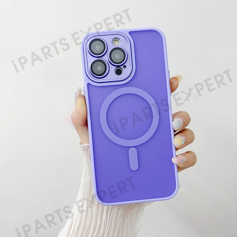 For iPhone 14 Pro Magnetic Case with Lens Film / Detachable Lens Frame Hybrid Phone Back Cover - Light Purple