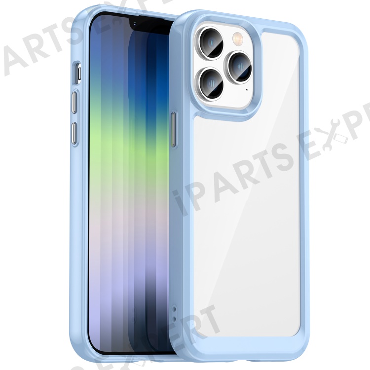 For iPhone 14 Pro Max 6.7 inch Brush Texture Anti-fingerprint TPU+Acrylic Anti-fall Protective Phone Case Cover - Baby Blue