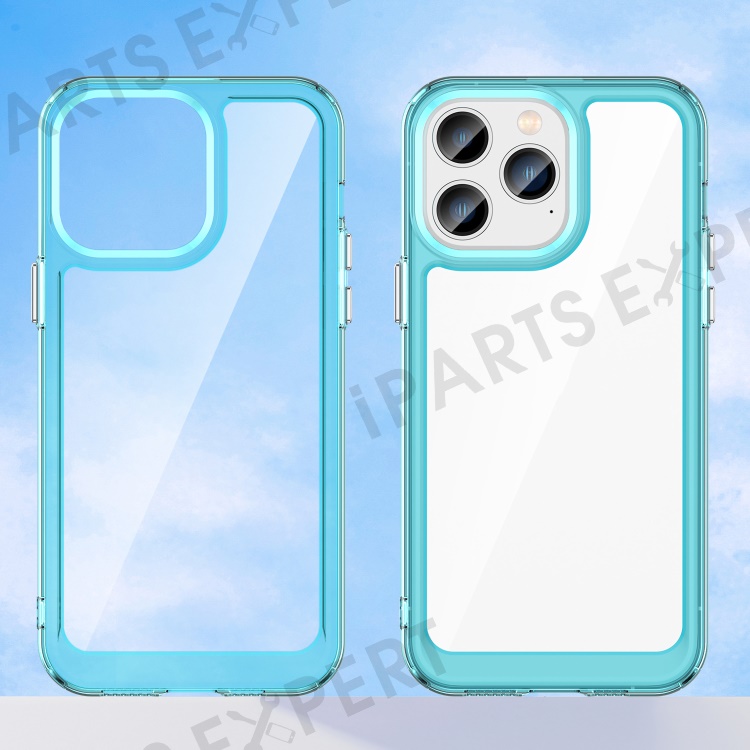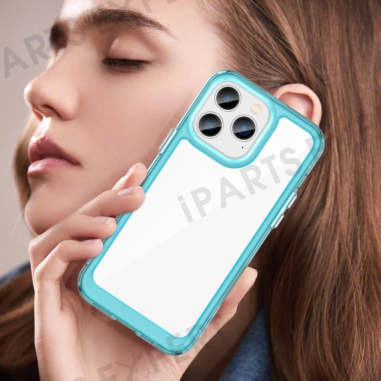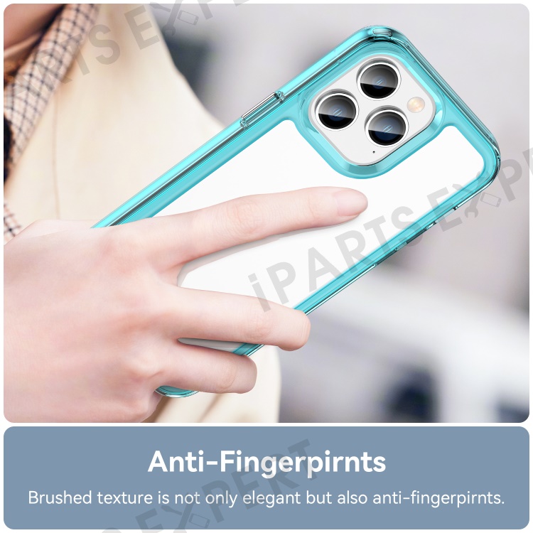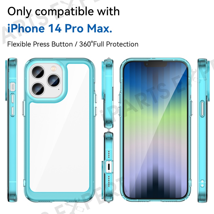 For iPhone 14 Pro Max 6.7 inch Brush Texture Anti-fingerprint TPU+Acrylic Anti-fall Protective Phone Case Cover - Transparent Blue