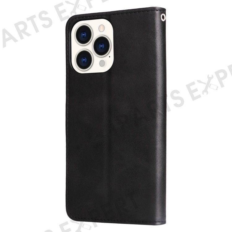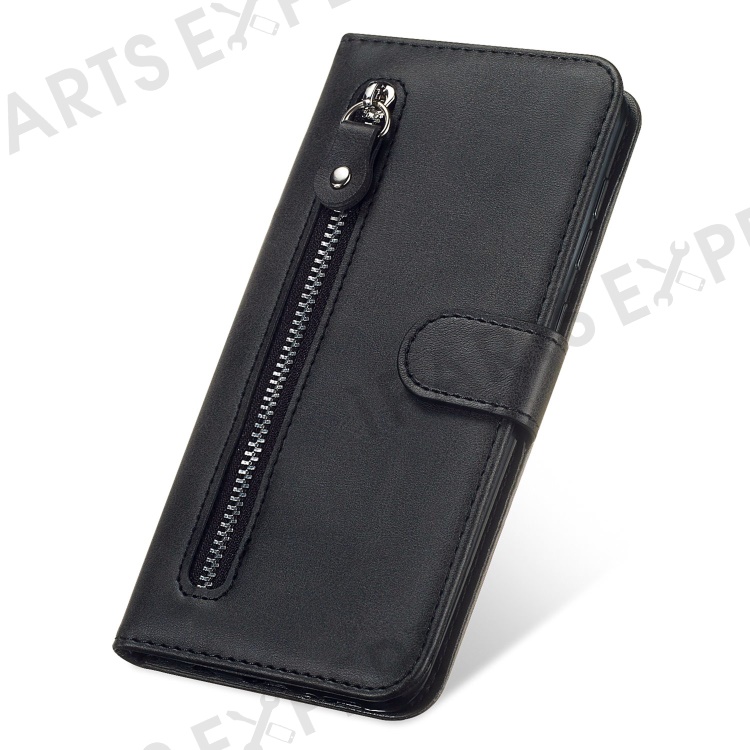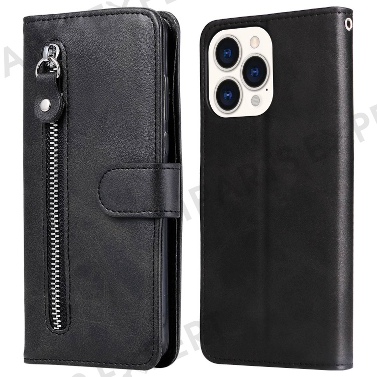 For iPhone 14 Pro Max 6.7 inch Bump Proof Phone Case Outer Zipper Pocket PU Leather Stand Wallet Cover - Black