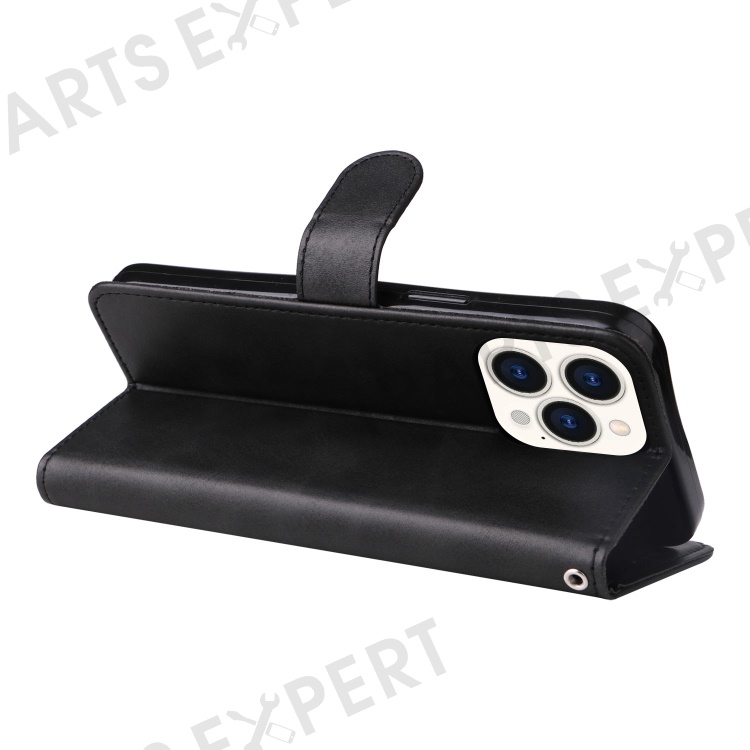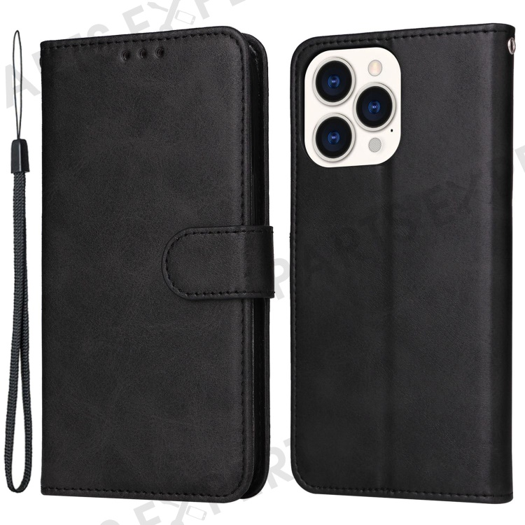 For iPhone 14 Pro Max 6.7 inch Calf Texture PU Leather Phone Full Protection Cover Magnetic Clasp Flip Stand Wallet Case - Black