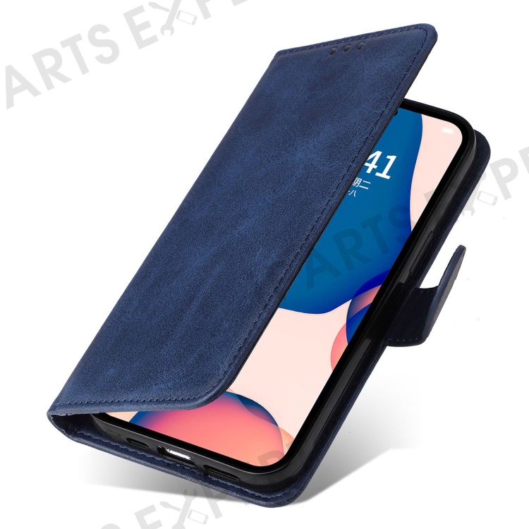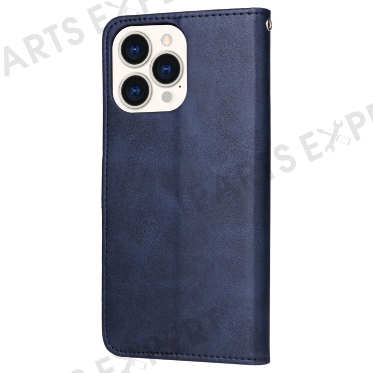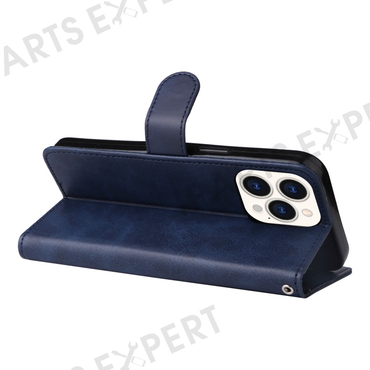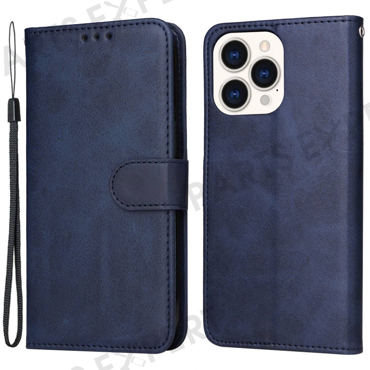 For iPhone 14 Pro Max 6.7 inch Calf Texture PU Leather Phone Full Protection Cover Magnetic Clasp Flip Stand Wallet Case - Blue